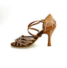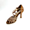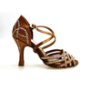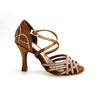 CAROLIN QC (Marea L14) - Scarpa Da Donna Bi-Flex in Raso Seta Bronzo Con Swarovski Boreali e Tacco a Rocchetto/Slim Latino Alto