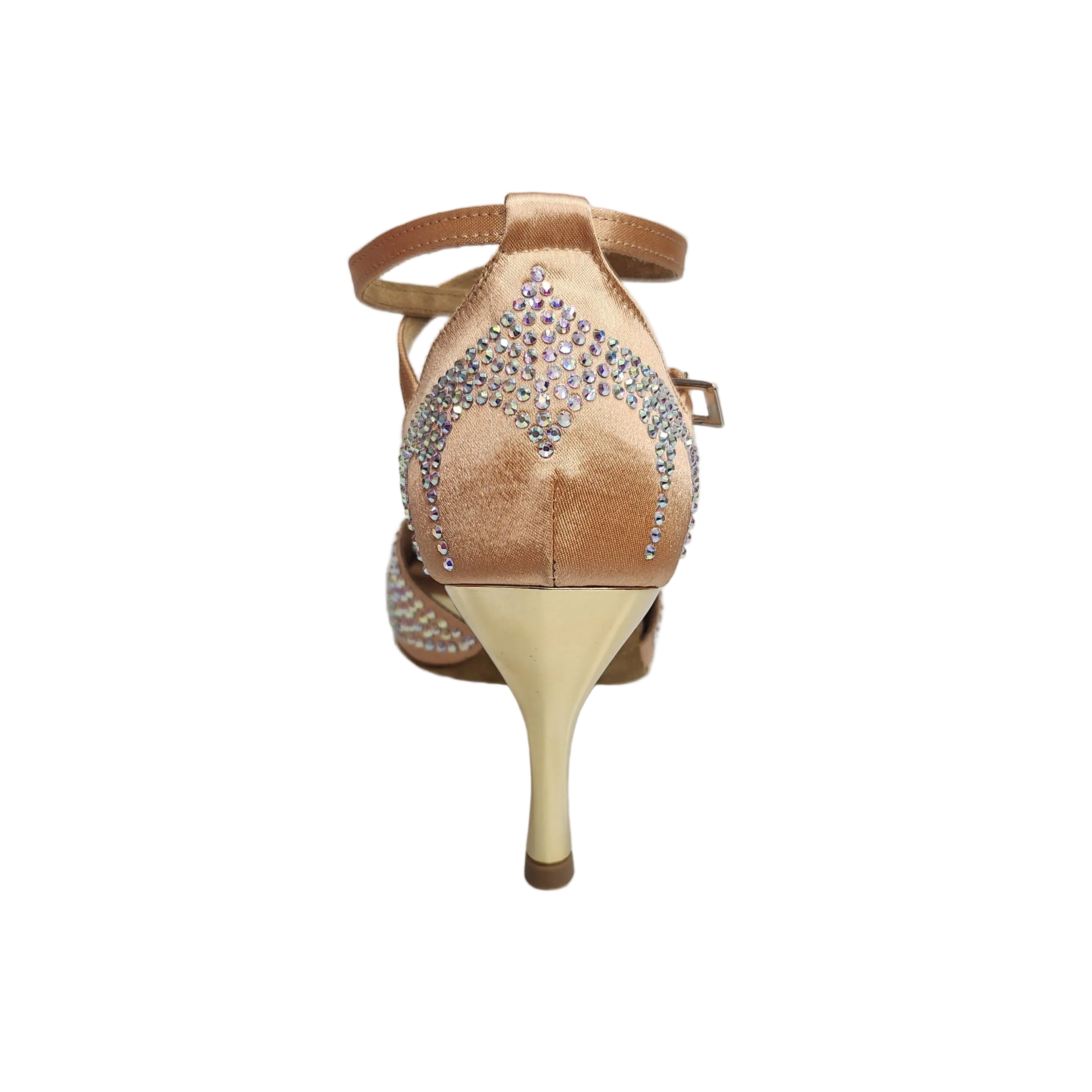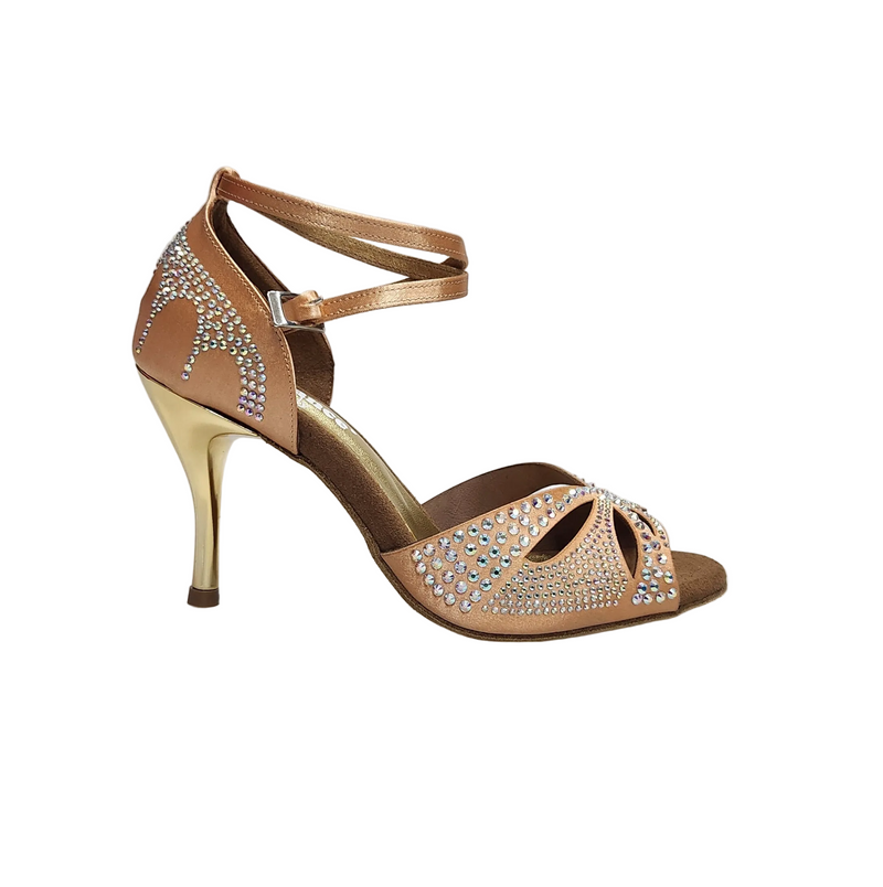 Deluxe Butterfly (L2) - Scarpa da Ballo in Raso Seta Carne Flash con Swarovski Boreali Tacco a Spillo Laminato Oro
