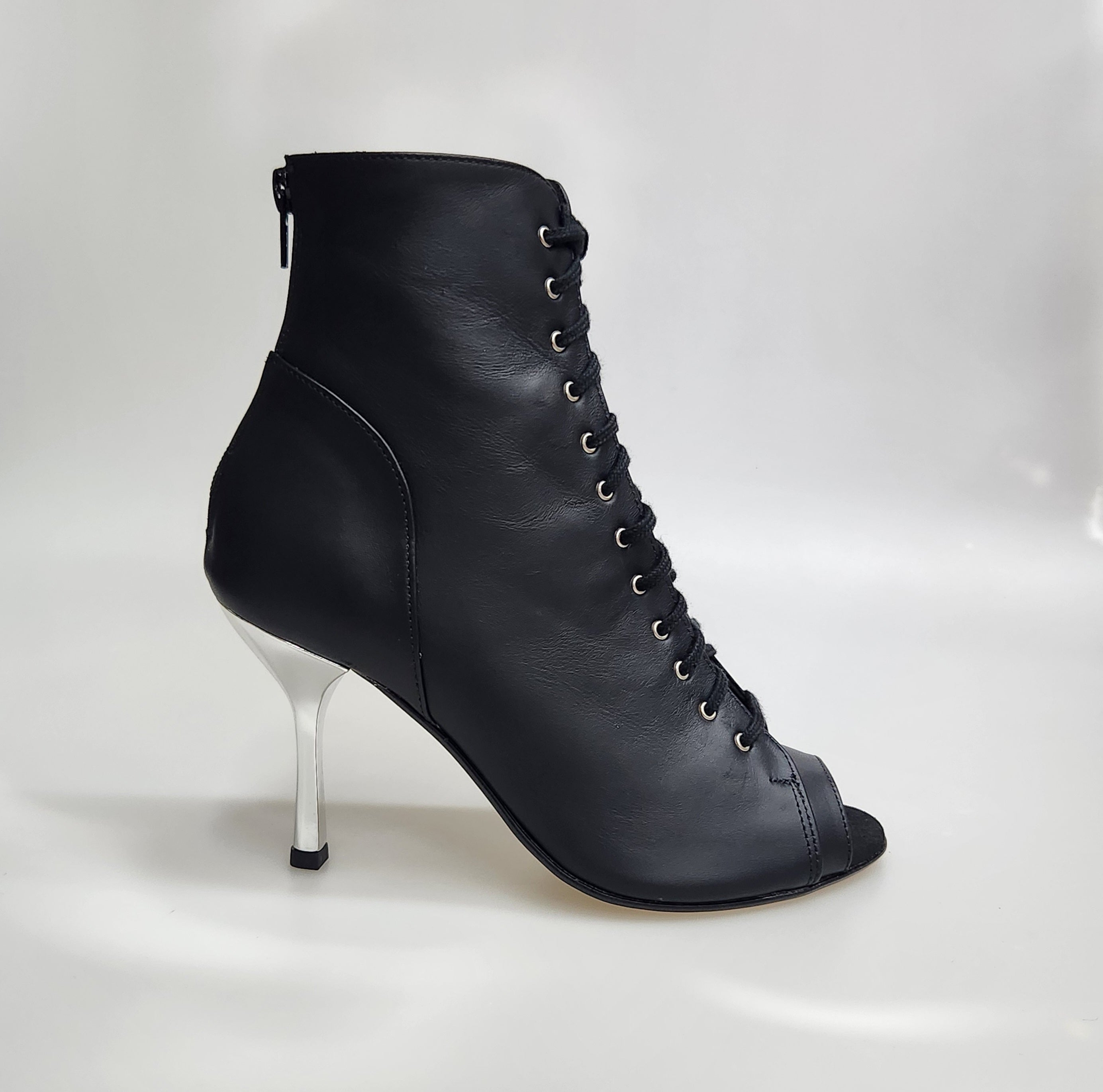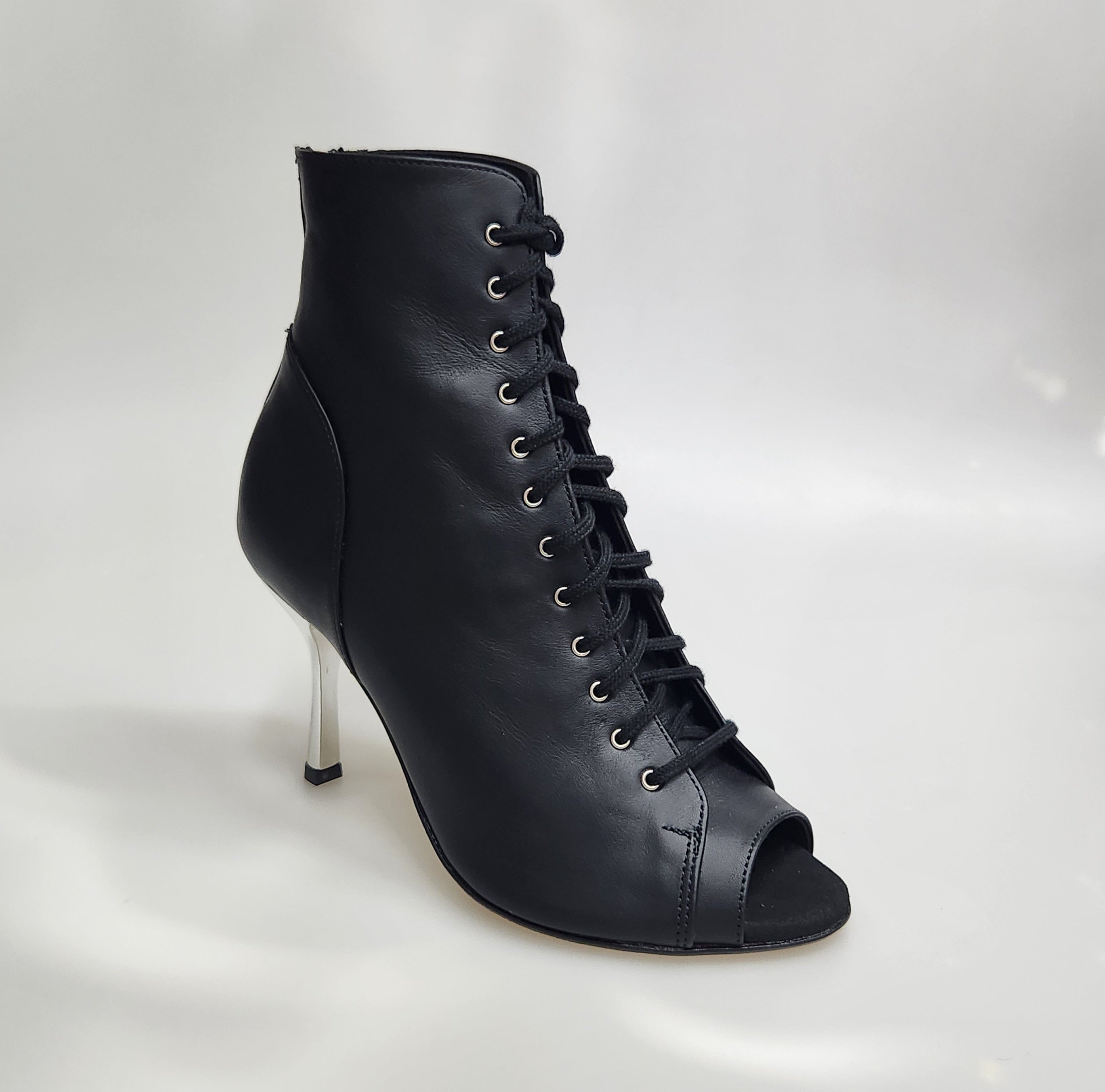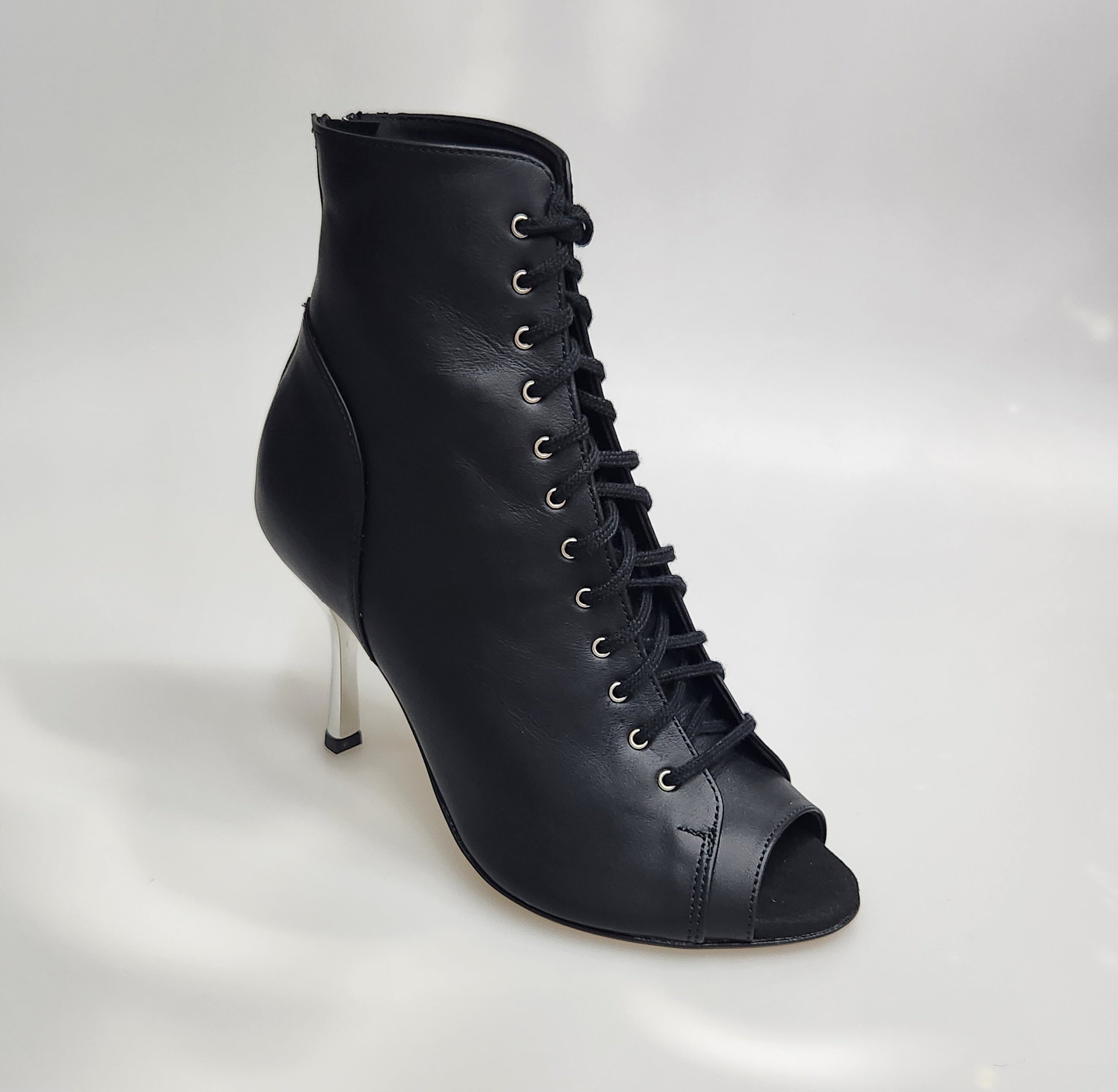 Mezzo Stivaletto da Donna realizzato interamente a mano con apertura sulle dita in Vera Pelle Nera con Suola in Bufalo, Cuoio o resina in Gommina Micro Light Rubbersole®