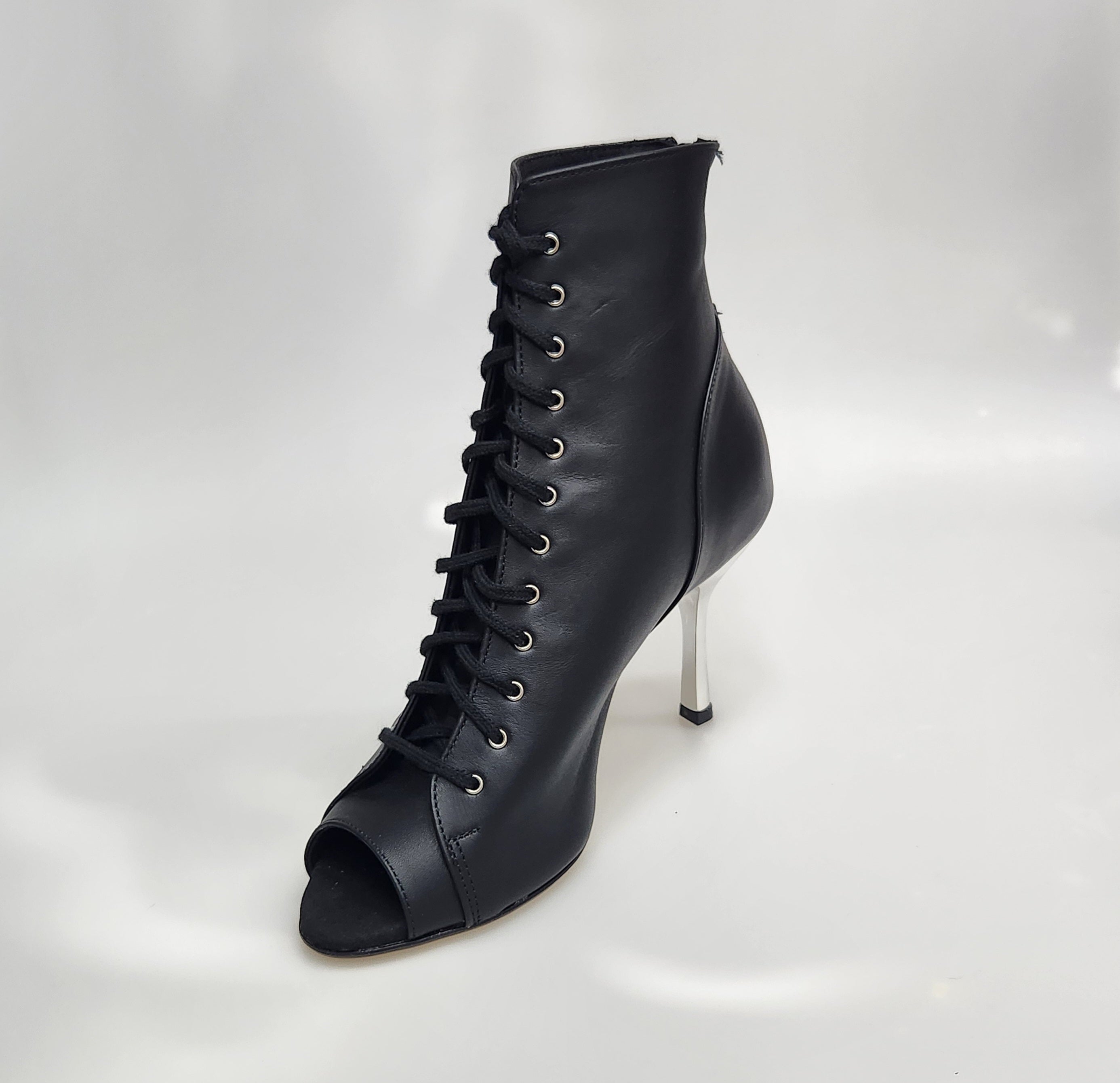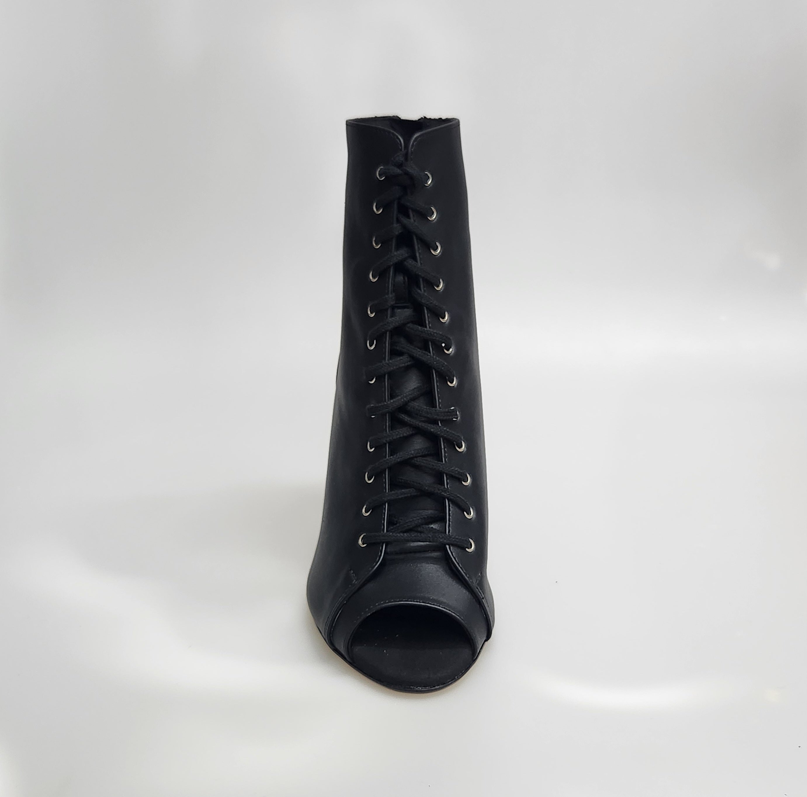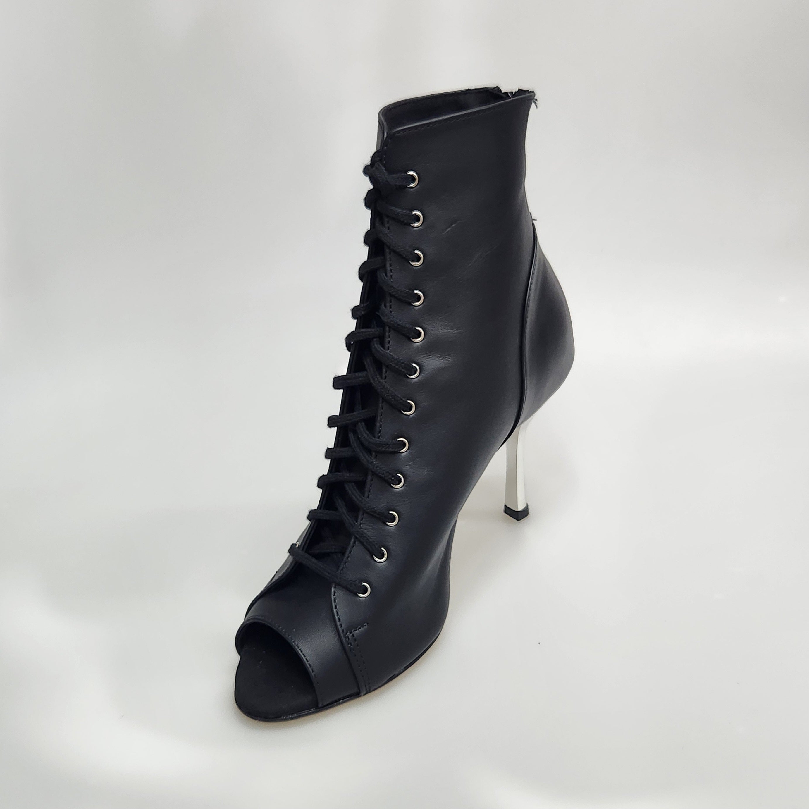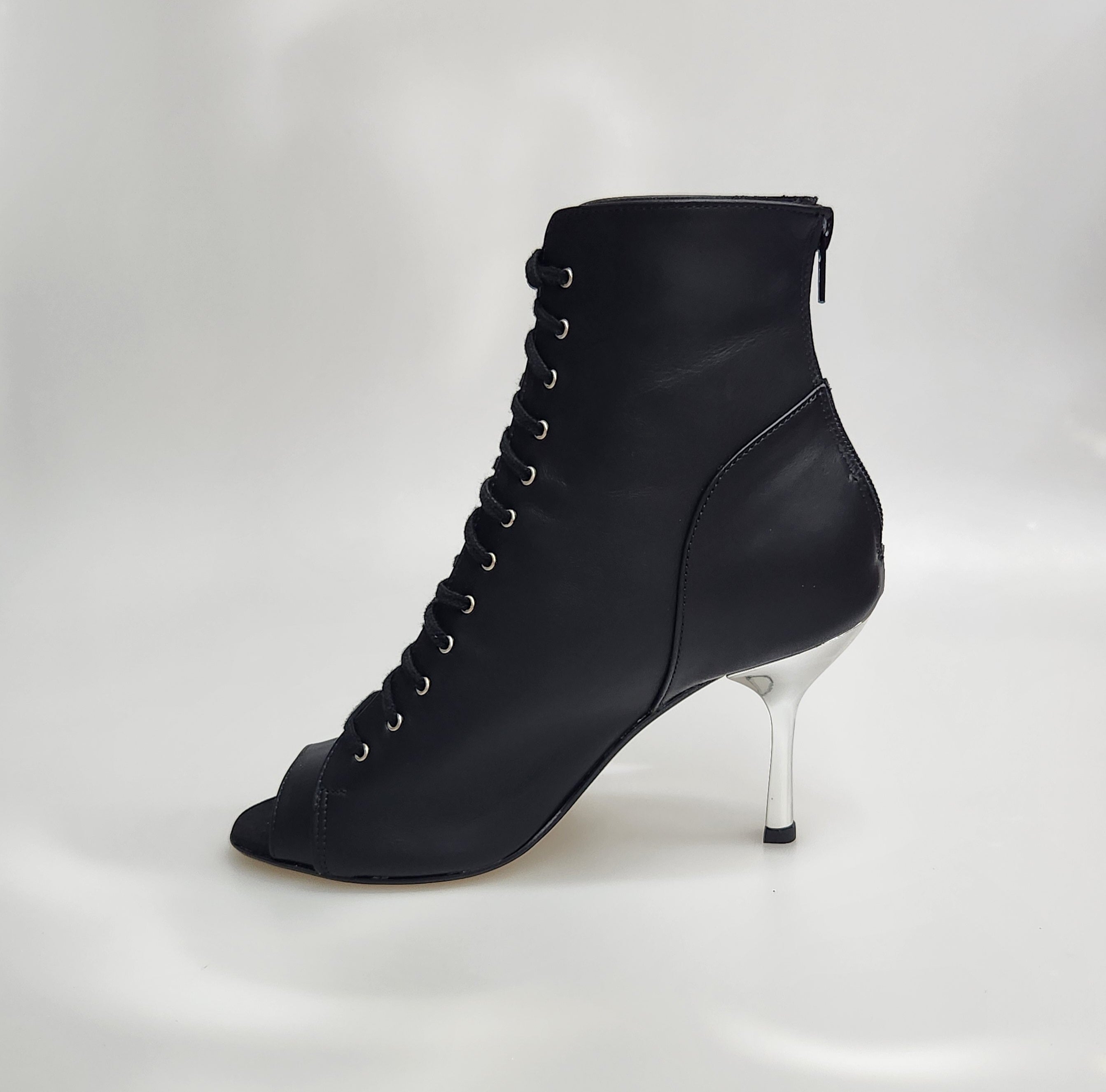 Mezzo Stivaletto da Donna realizzato interamente a mano con apertura sulle dita in Vera Pelle Nera con Suola in Bufalo, Cuoio o resina in Gommina Micro Light Rubbersole®