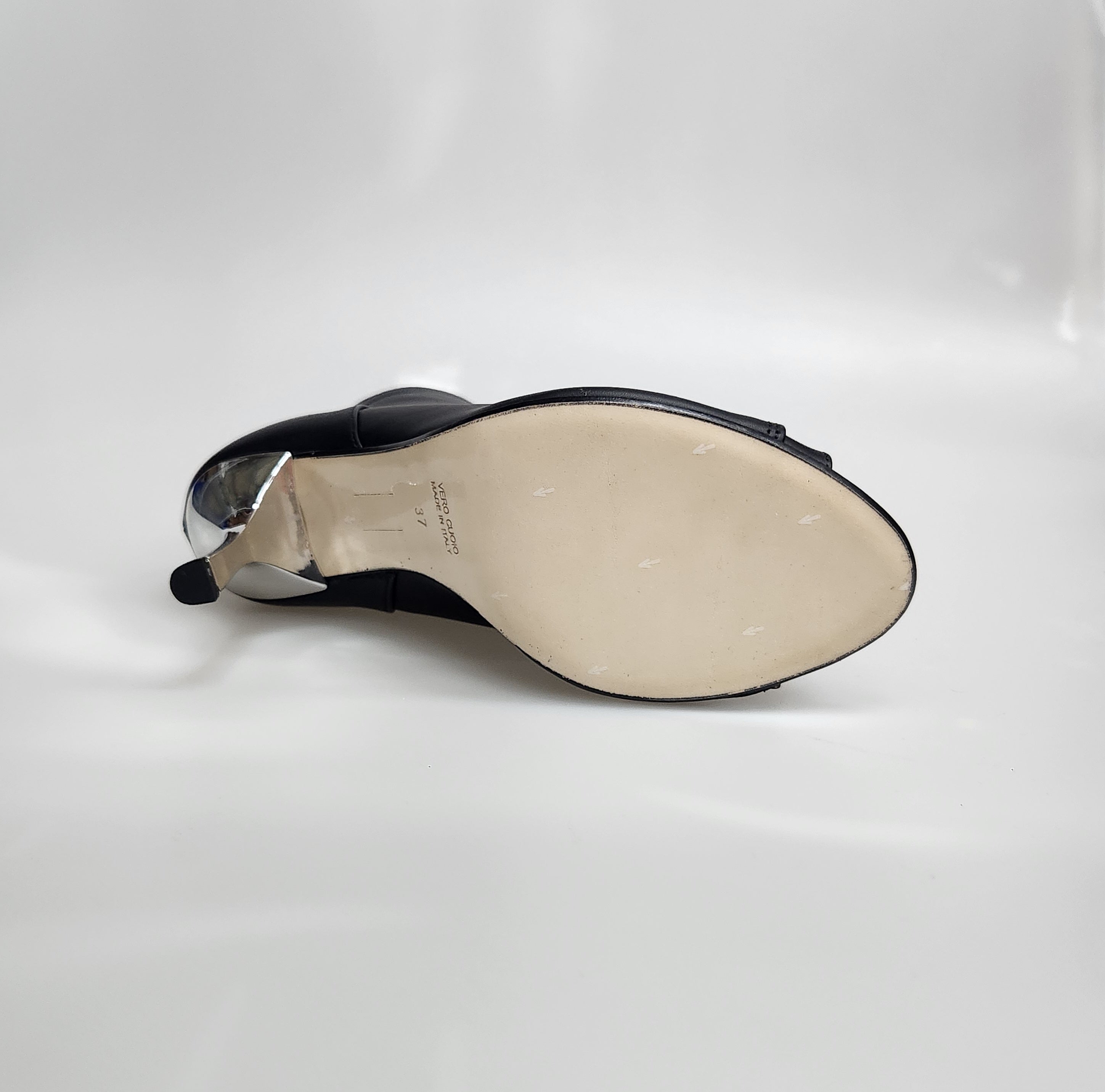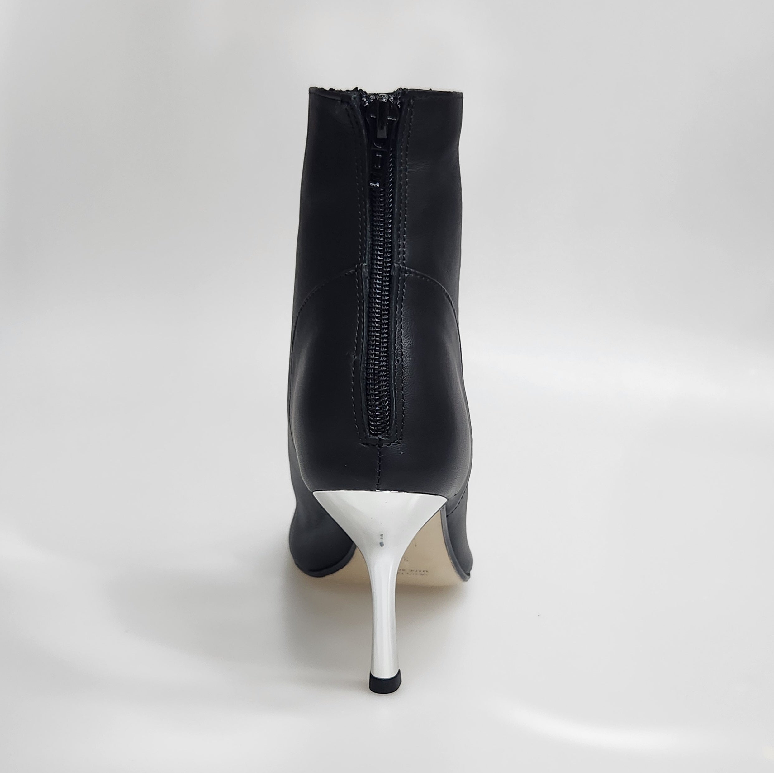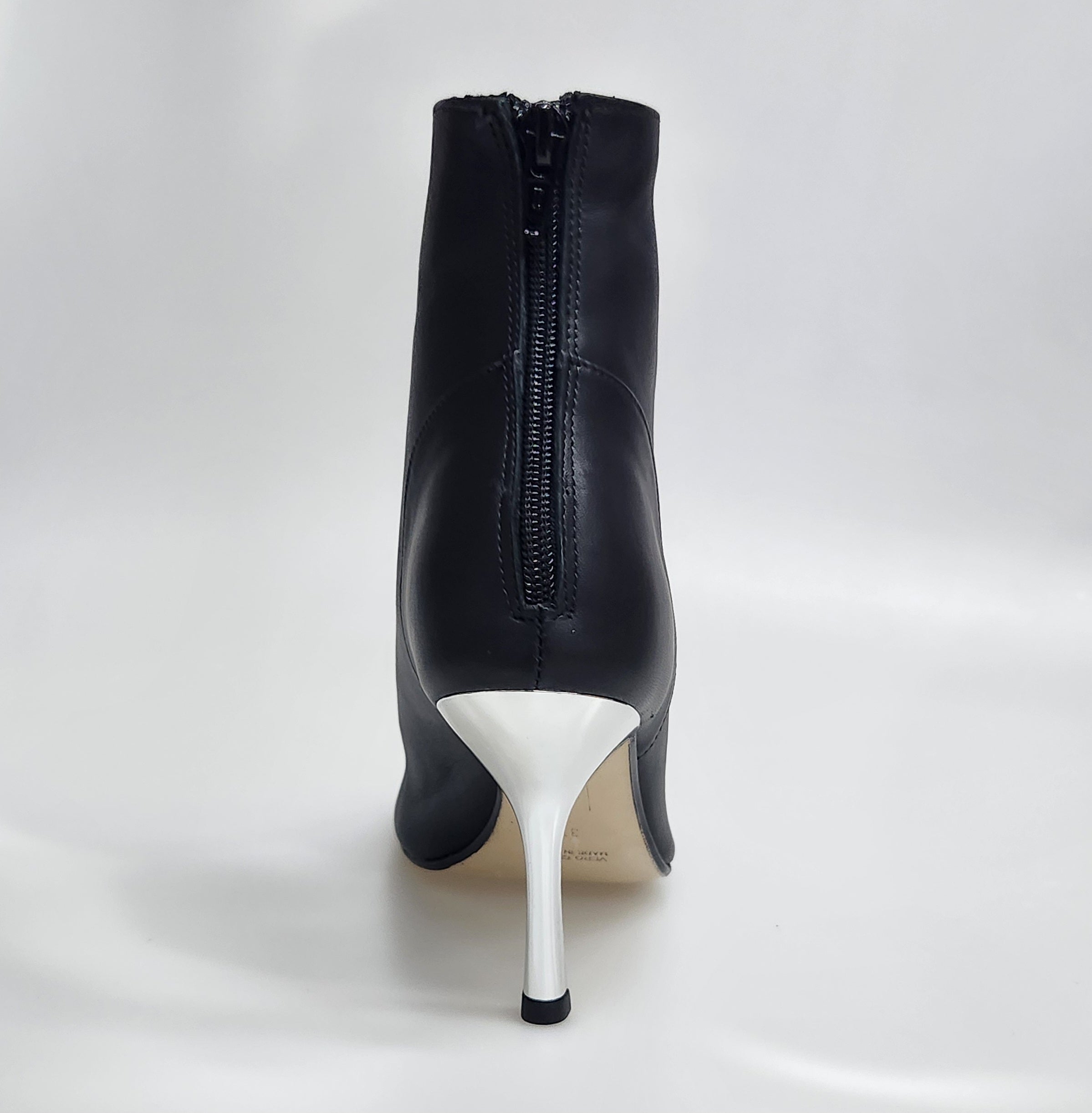 ALEXIS Black Silver (Art. 132) - Mezzo Stivaletto con Zip in Pelle Nera Tacco a Stiletto Squadrato Sottile in Alluminio Laminato Argento