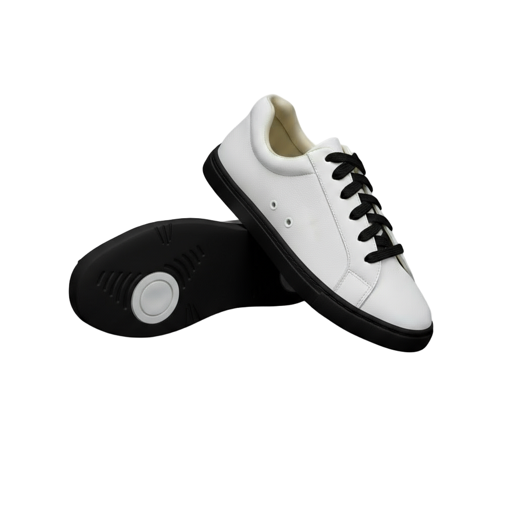 Ataca Suprema Vortice (FCE) - Sneaker Ecopelle Totale Bianca materiale Vegan confort Light Flex Suola Nera in Gommina e Resina Tecnica Cerchi Bianchi