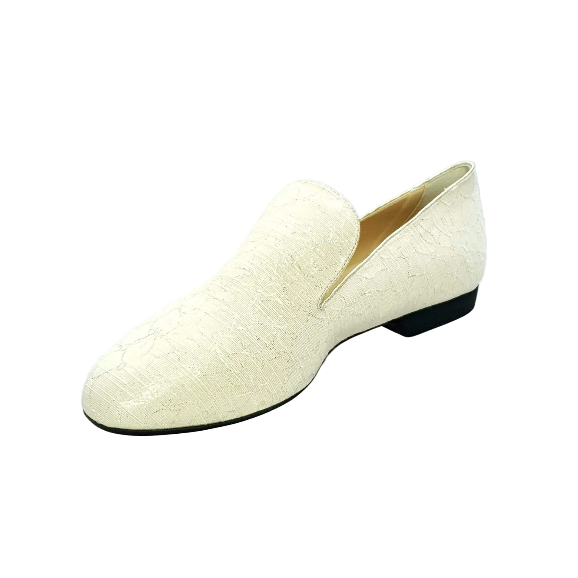 Serse (800) - Mocassino da Uomo in Tessuto Seta Avorio Lavorato Oro elis