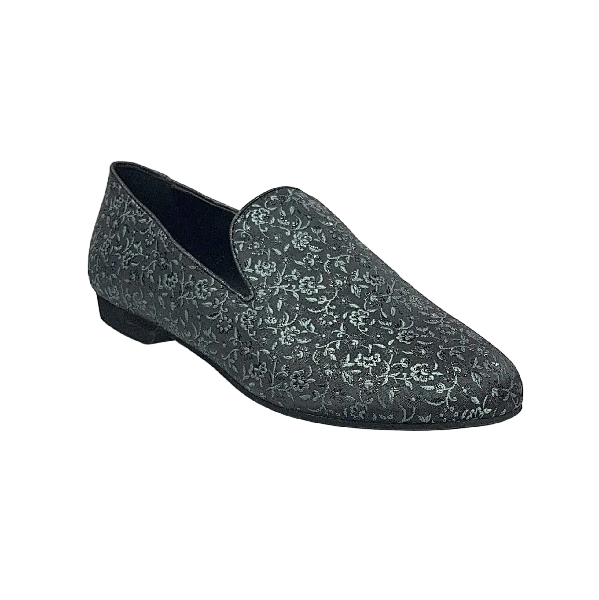 Mocassino da uomo realizzato interamente a mano in tessuto fiorato veneziano verde scuro