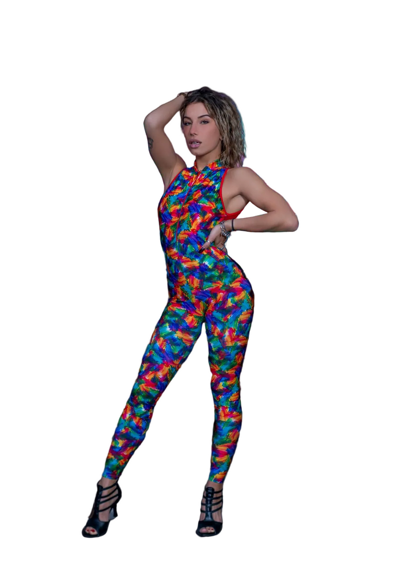 DENISE Fantasy Zip - Jumpsuit in Microfibra Traspirante Bielastica Modellante Contenitivo containment Fantasia Picasso multicolor
