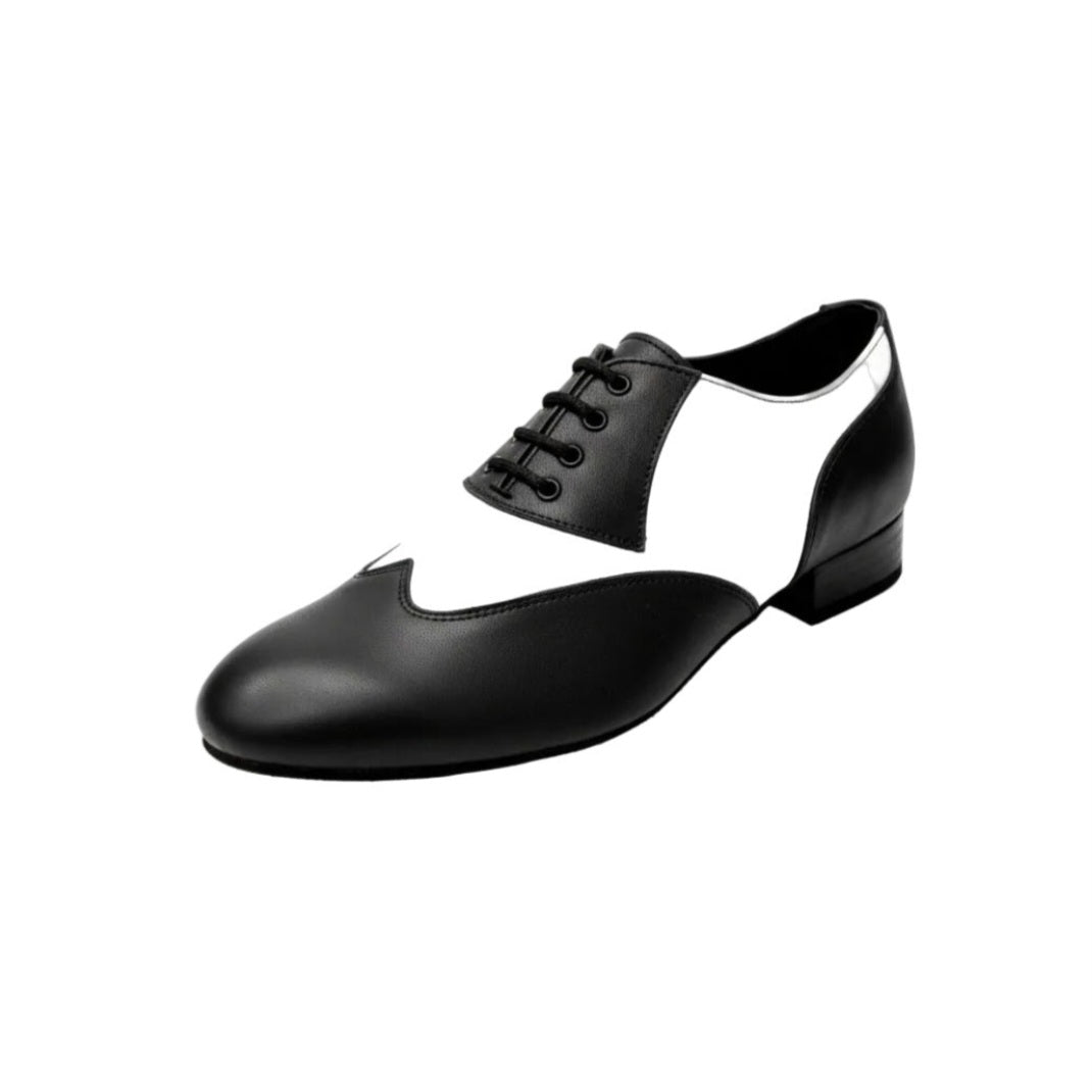 Scarpa stringata da ballo in Pelle Nera e Pelle Bianca con tacco 20 2Cm
