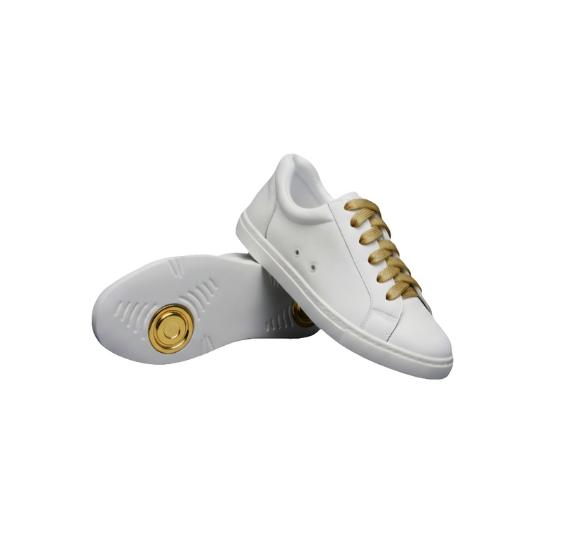Ataca Vortice (FCE) - Sneaker Ecopelle Totale Bianca materiale Vegan confort Light Flex Suola Bianca in Gommina e Resina Tecnica Cerchi Oro