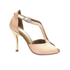 ELIDE (401) - Scarpa da Donna in Raso Seta Carne con Tacco a Spillo Laminato Oro
