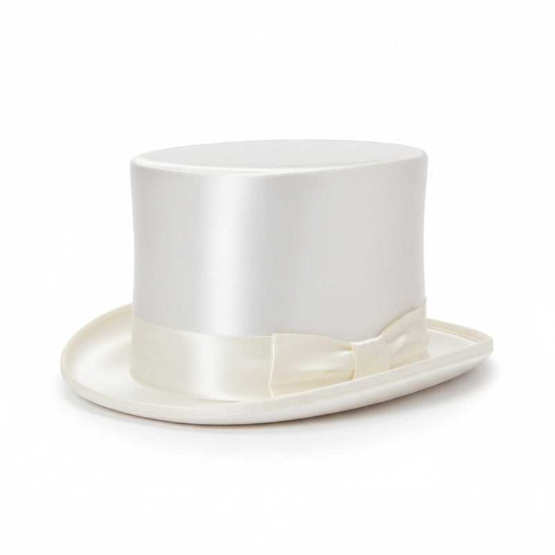 Top Hat in Ivory White Silk Satin with Extra Top Quality White Band for Groom / Bride