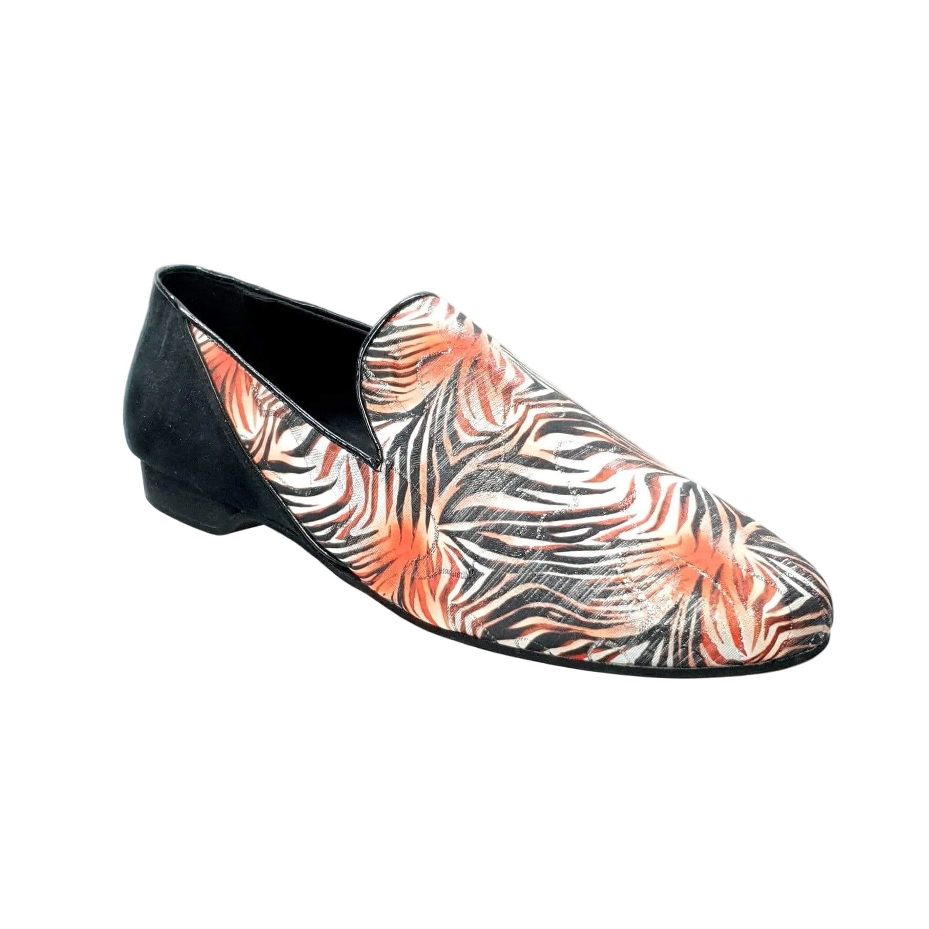Serse (800B) - Men's Moccasin in Red Jungle Patterned Fabric with Black Suede Heel