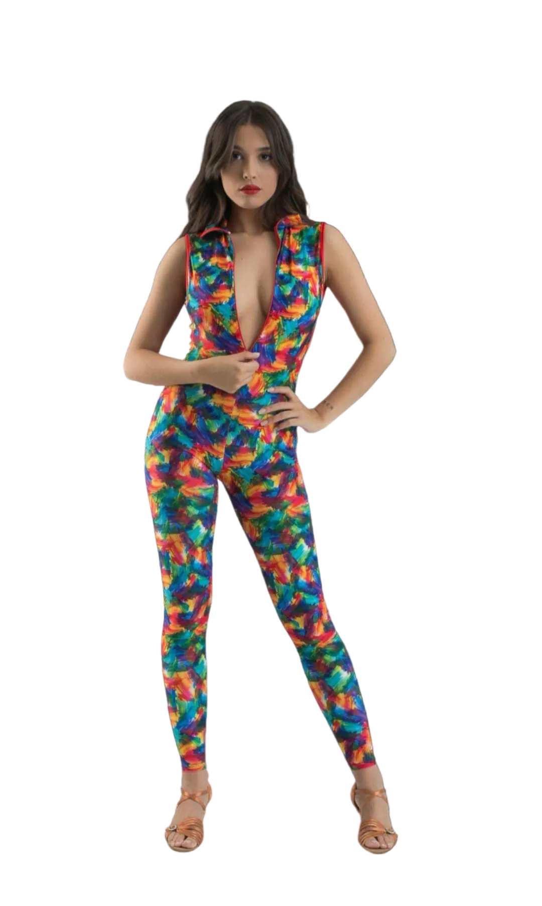 DENISE Fantasy Zip - Jumpsuit in Microfibra Traspirante Bielastica Modellante Contenitivo containment Fantasia Picasso multicolor