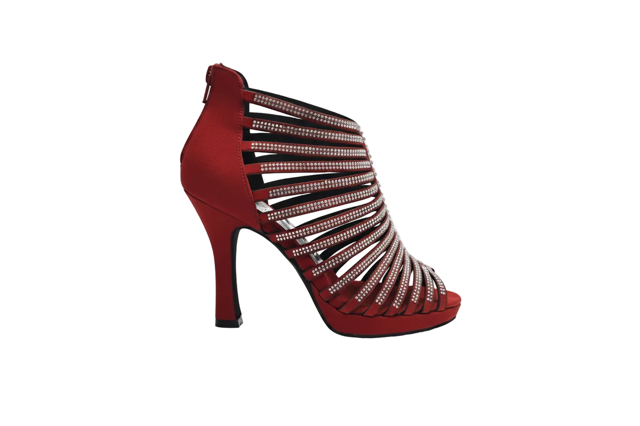 ELSY Plus (LP7) - Sandalo a Tronchetto Da Donna in Morbido Camoscio Rosso Con Swarovski Boreali con Plateau Flex e Tacco Basso a Spillo Largo