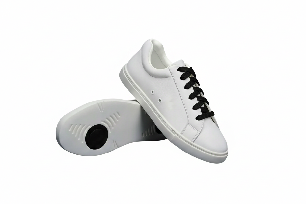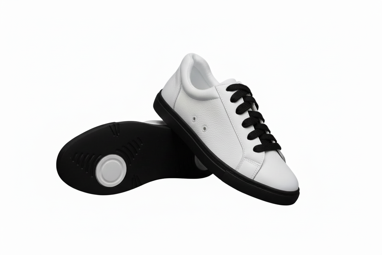 Ataca Vortice (FCE) - Sneaker Ecopelle Totale Bianca materiale Vegan confort Light Flex Suola Bianca in Gommina e Resina Tecnica Cerchi neri