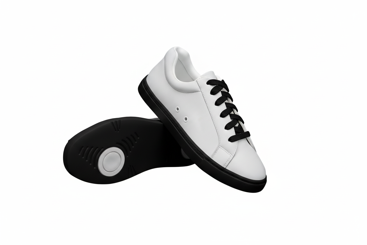 Ataca Vortice (FCE) - Sneaker Ecopelle Totale Bianca materiale Vegan confort Light Flex Suola Nera in Gommina e Resina Tecnica Cerchi Bianchi