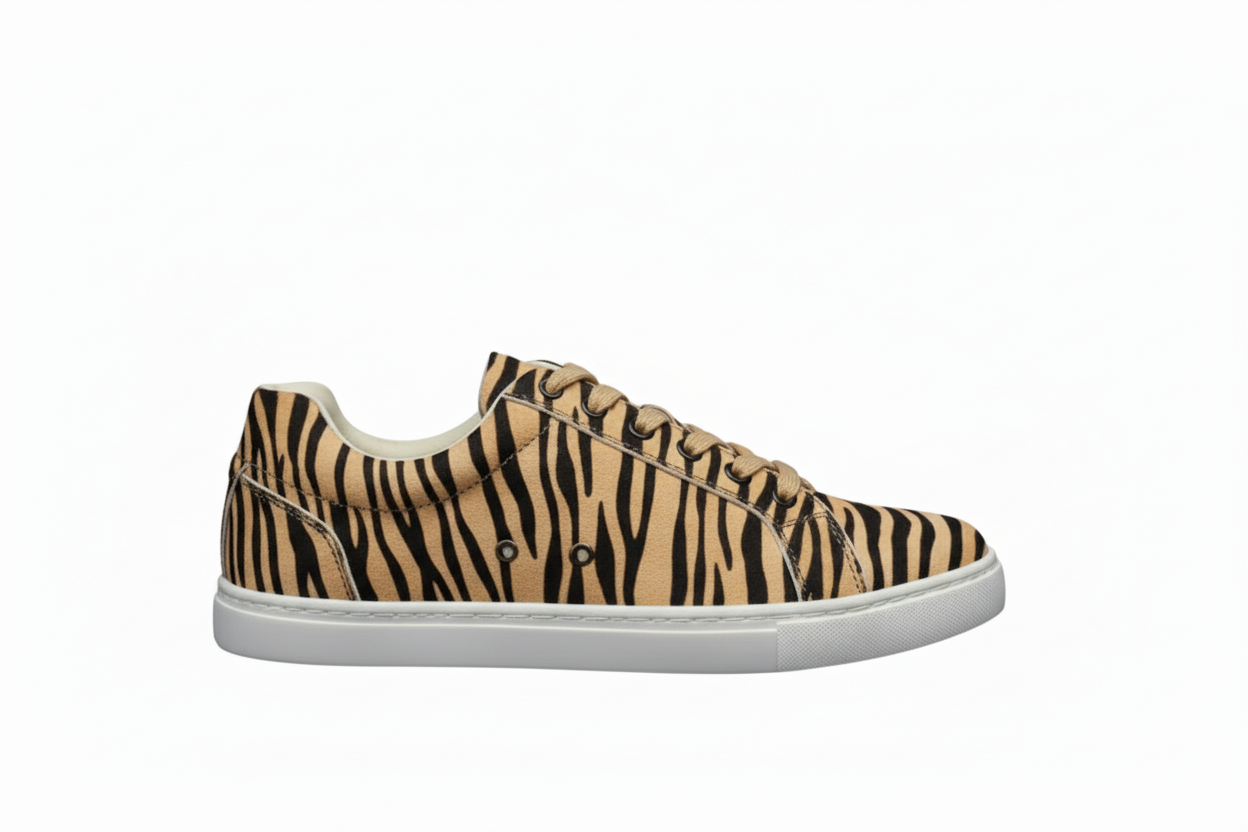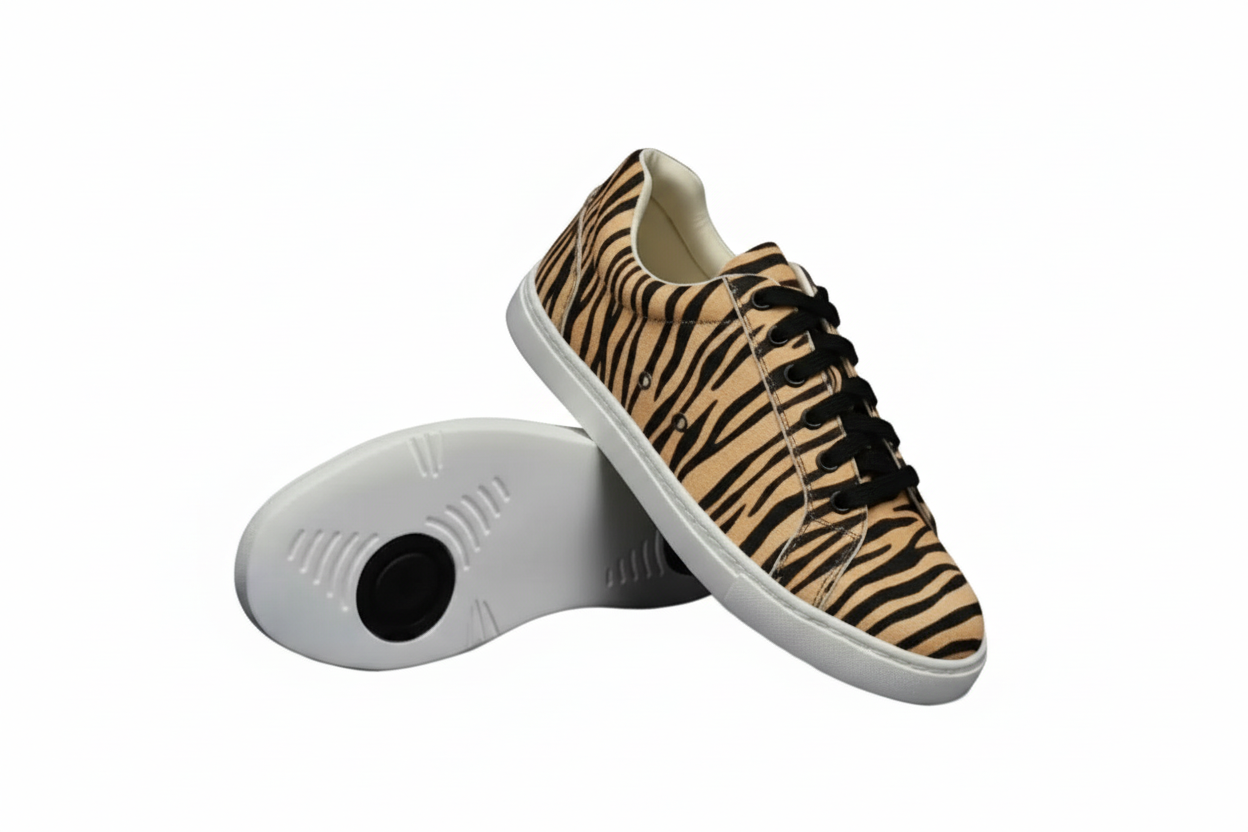 Ataca Vortice (FCE) - Sneaker disegno Tigre Bengala materiale Vegan confort Light Flex Suola Nera in Gommina e Resina Tecnica Cerchi Neri