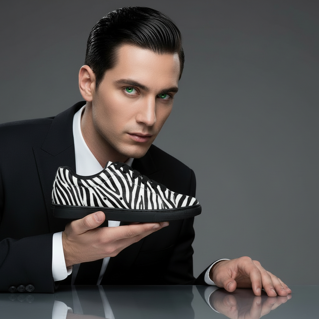 ATACA Zebry Black Silver Vortex (L0700FCE) - Sneaker in Tessuto Zebrato materiale Vegan confort Light Flex Suola Nera in Gommina e Resina Tecnica Cerchi Argento Pivot