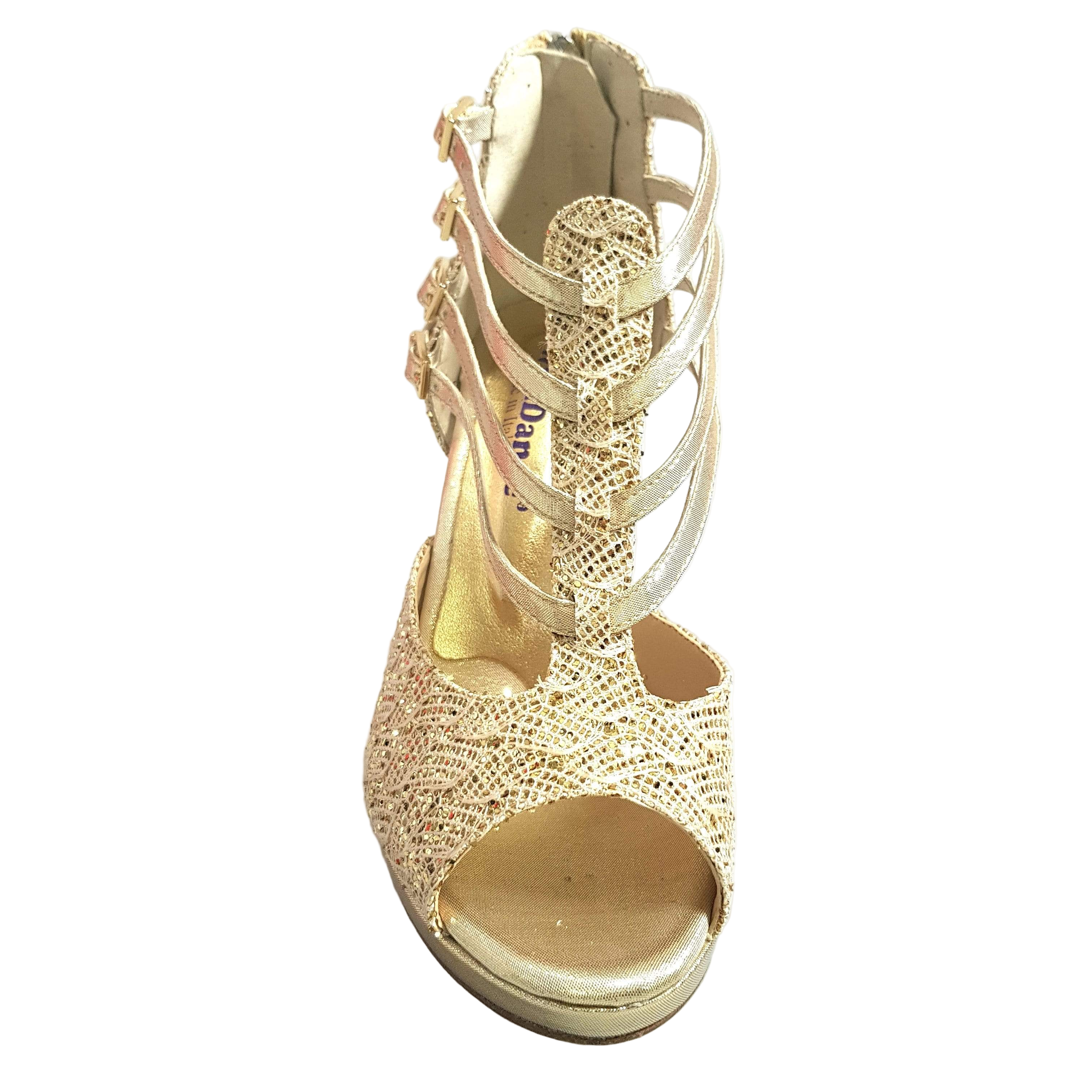 Wish Dance Shop Lussuria - Scarpa da Donna in Pizzo Oro con Plateau in Lurex Oro