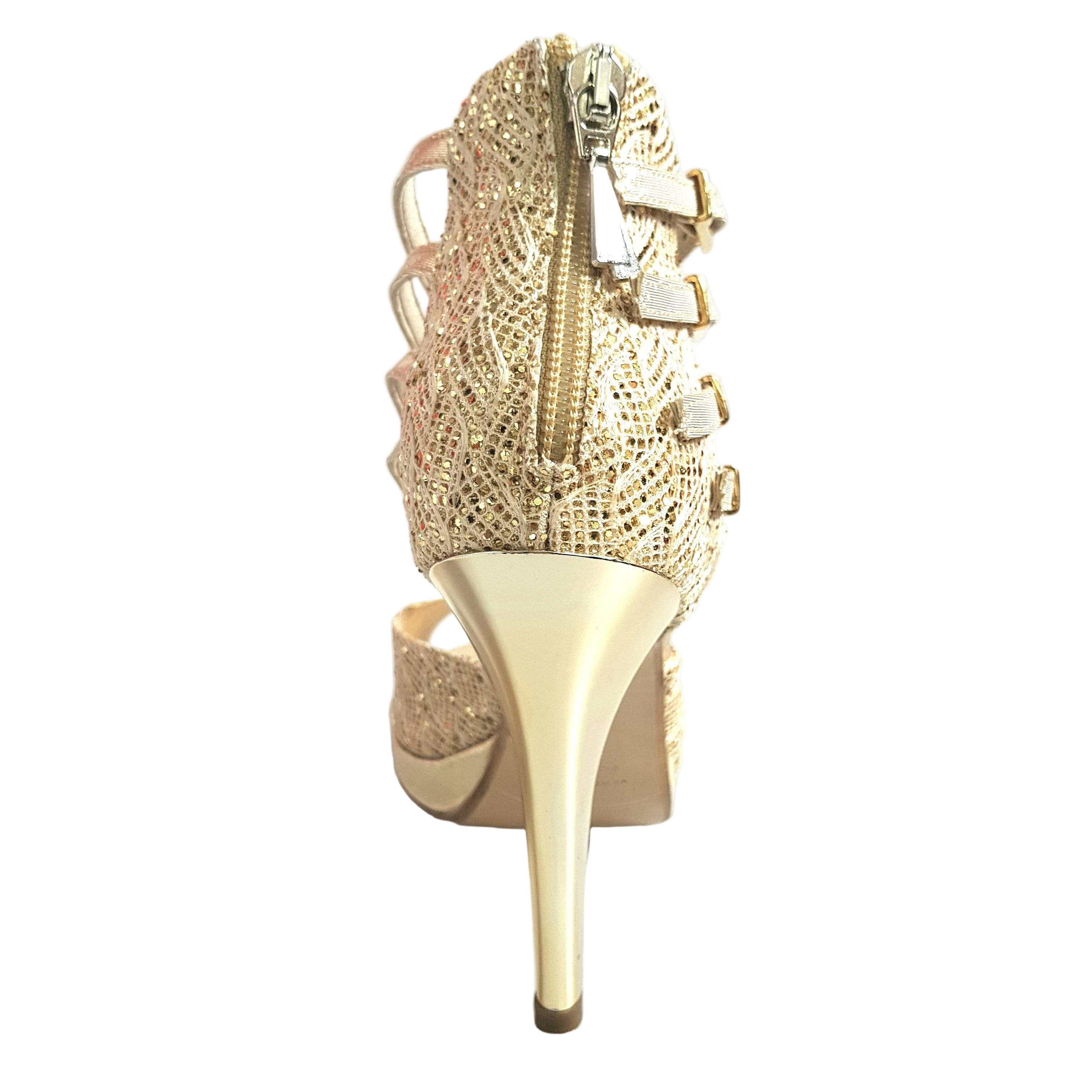 Lussuria (779) - Woman's Shoe in Gold Lace with Platform and Stiletto Heel and Plateau