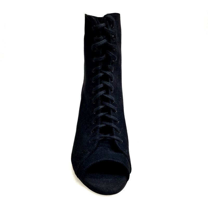 Mezzo Stivaletto da Donna realizzato interamente a mano con apertura sulle dita in Camoscio Nero con Suola in Bufalo, Cuoio o resina in Gommina Micro Light Rubbersole® Tacco a Rocchetto