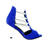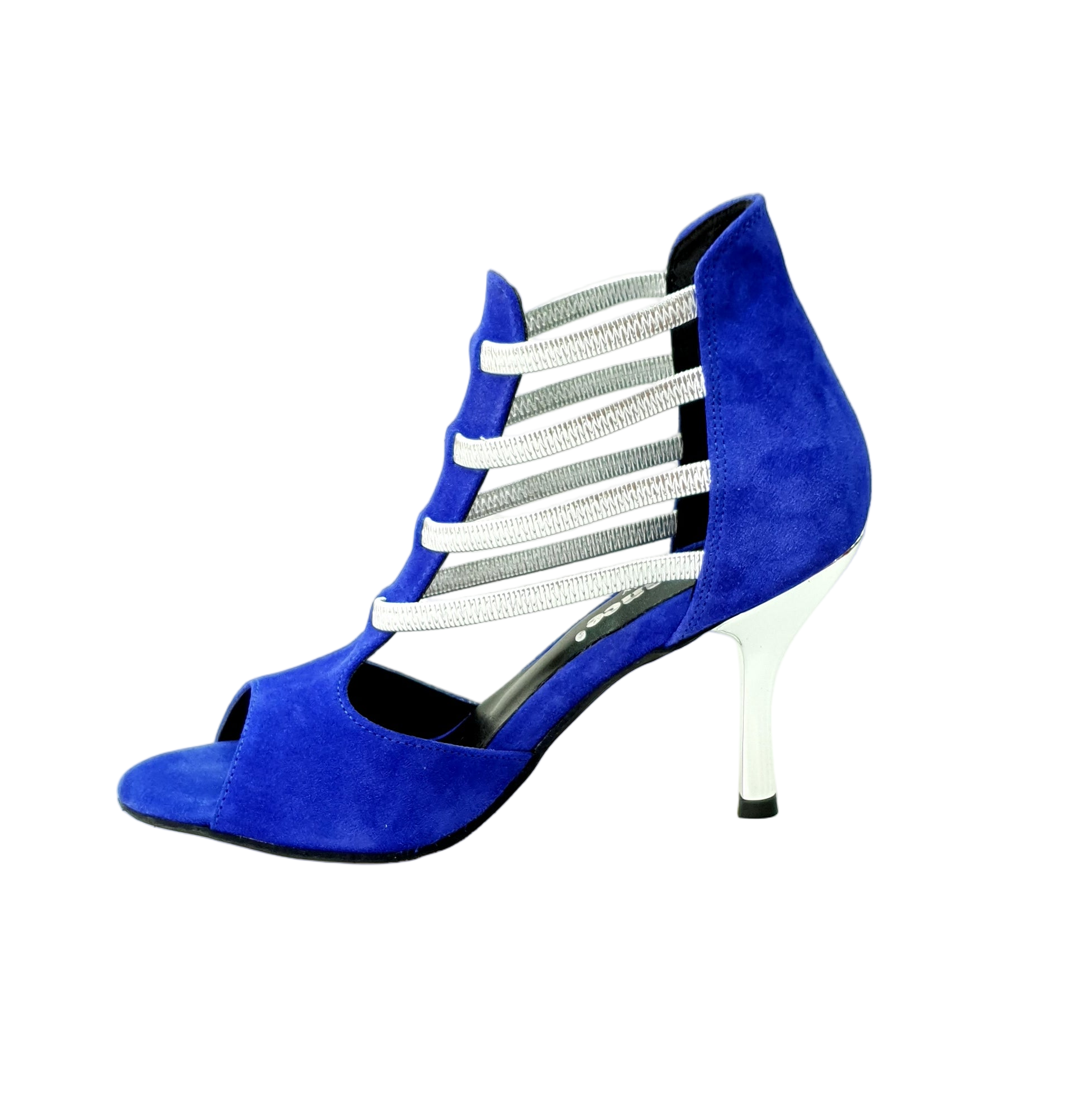 Tatyana (460PW) - Woman's Sandal in Royal Blue Suede with Silver Elastics and Silver Laminated Stiletto Heel