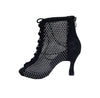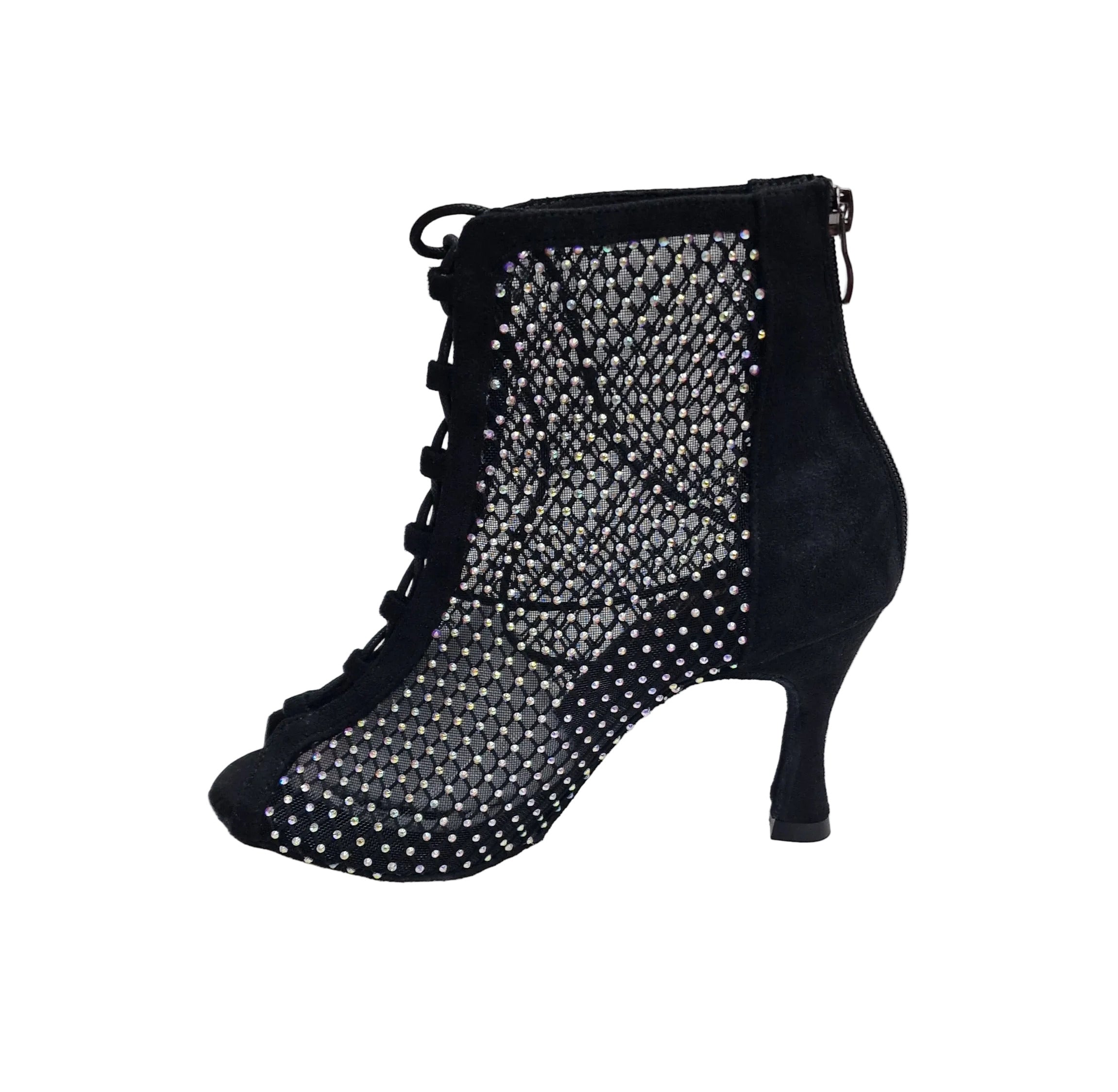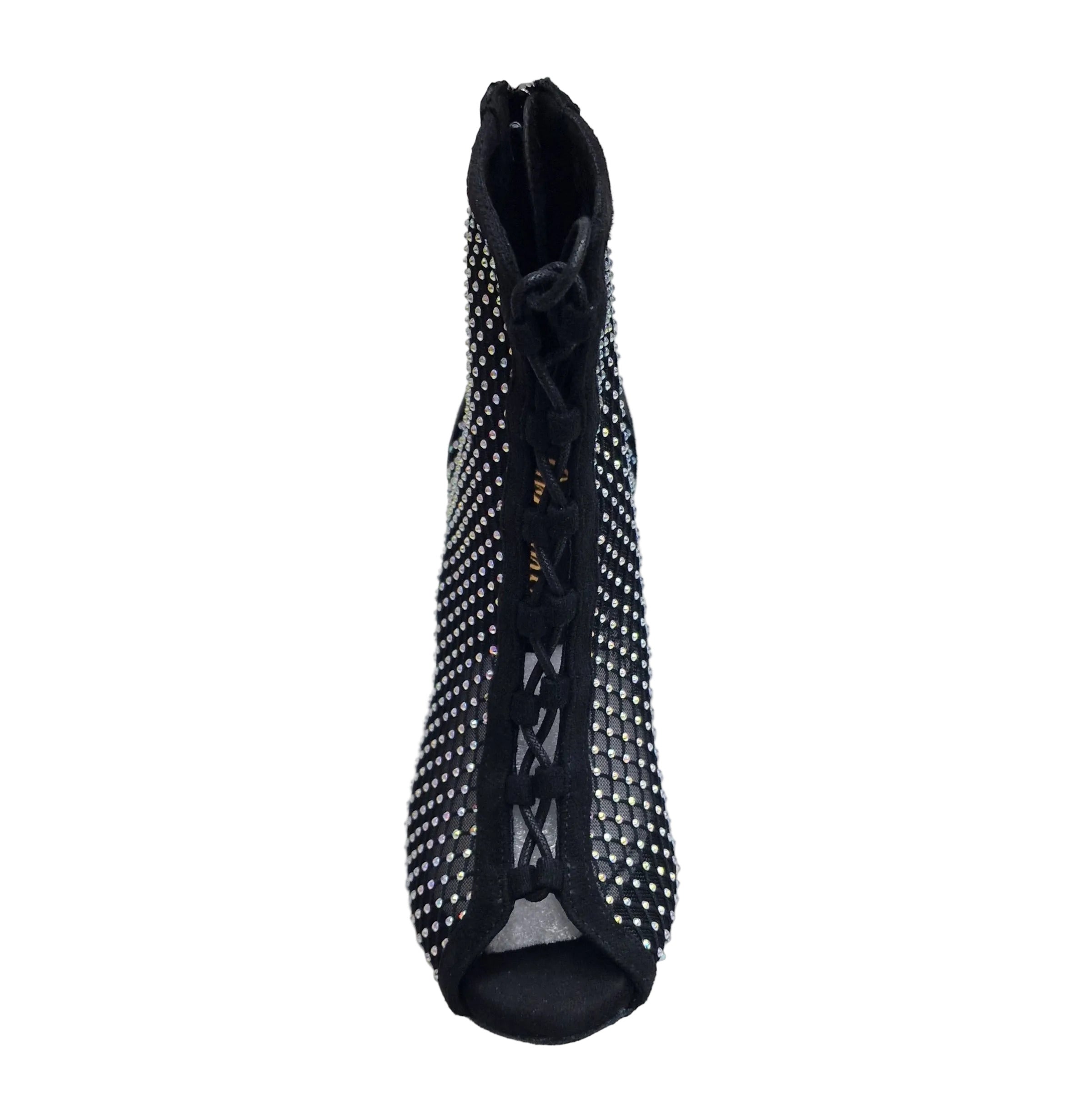 CLOE Dreams Black (L637) - Mezzo Stivaletto con Zip in Simil Camoscio Vegan e Rete Nera Incrociata con Strass Boreali Tacco a Rocchetto