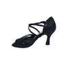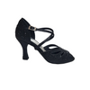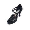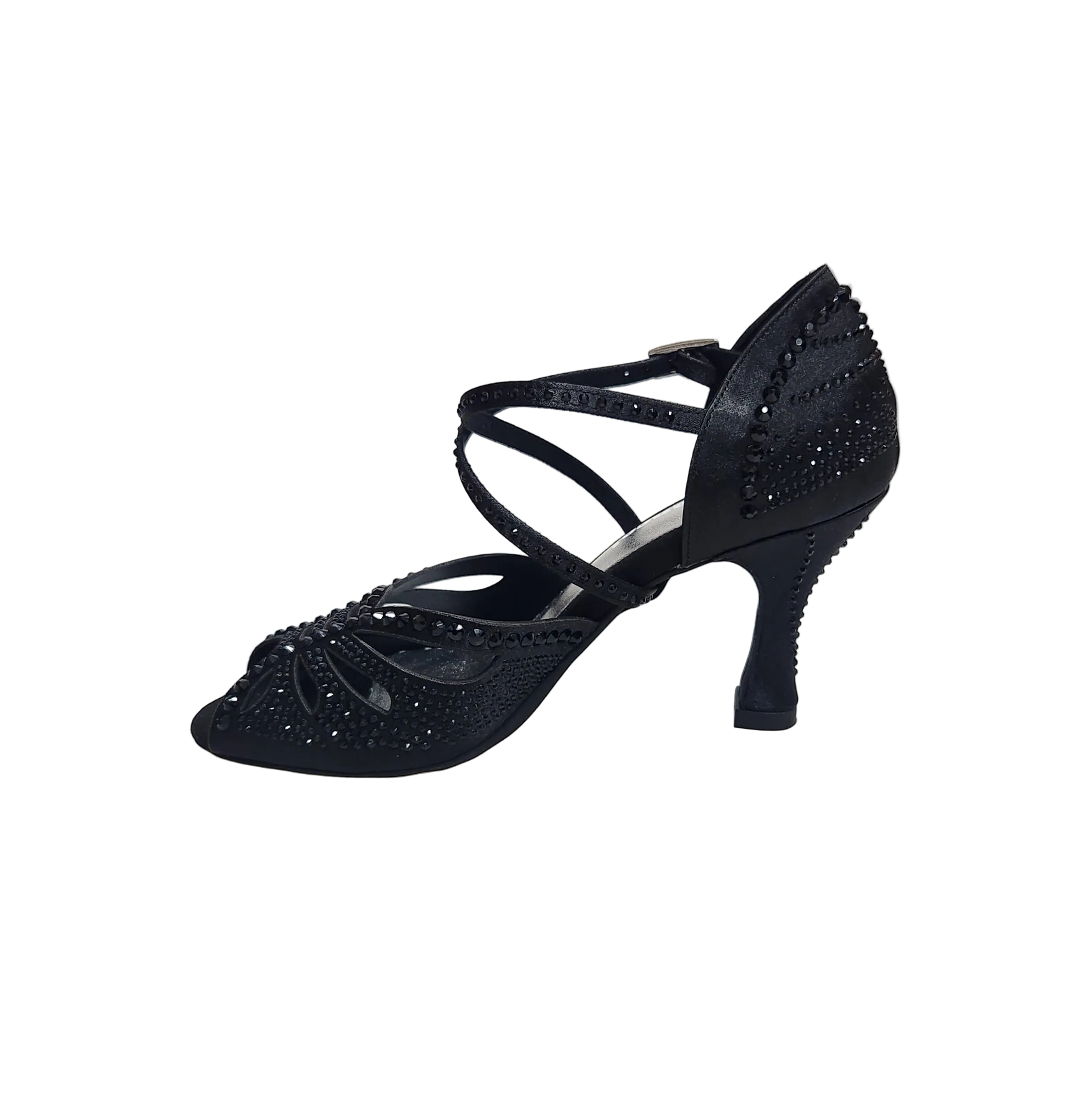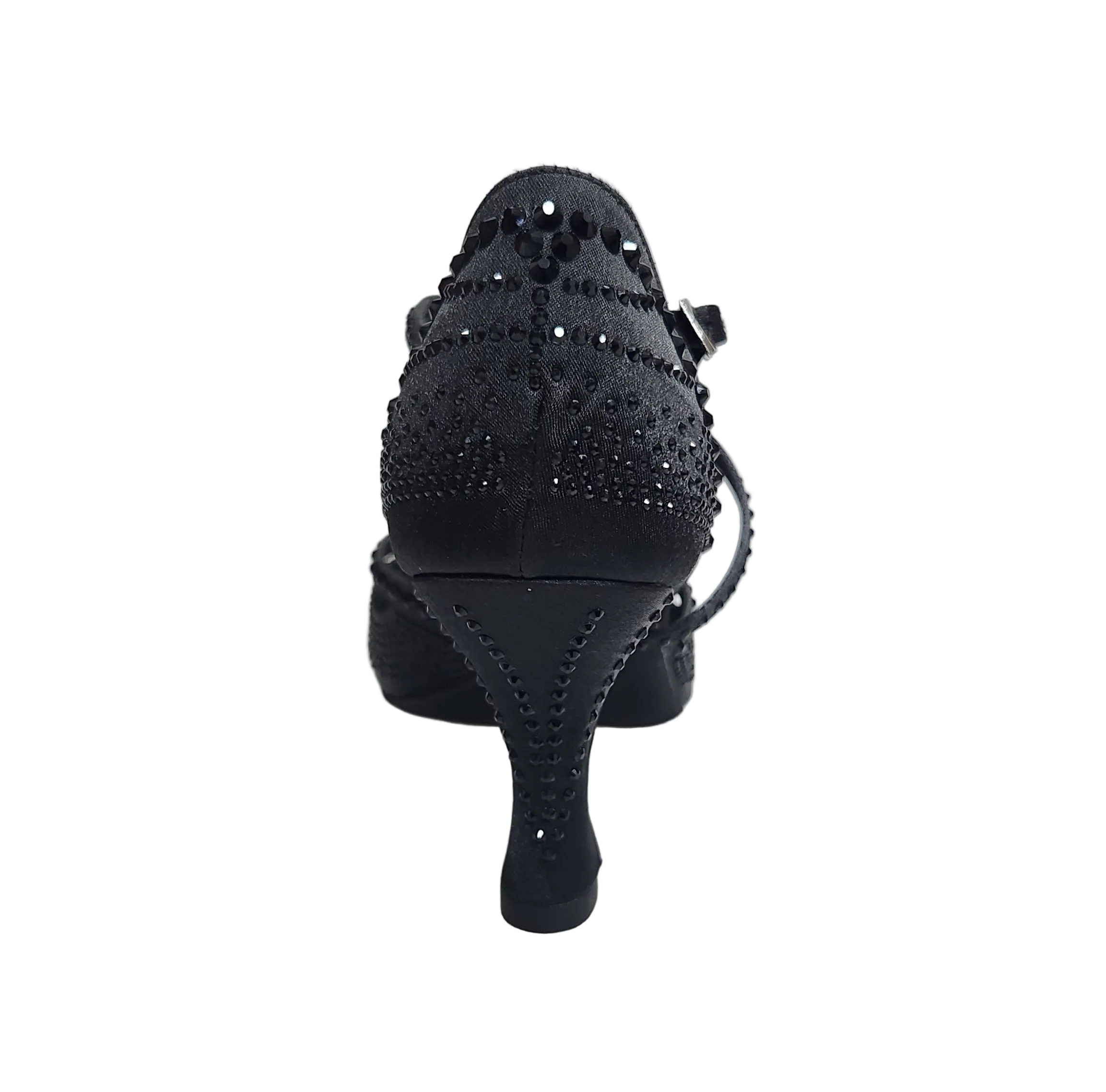 Carica immagine nella Galleria, DADA DIAMOND BLACK QC (L55) - SCARPA DA BALLO DA DONNA IN RASO SETA NERO CON SWAROVSKI NERI CINTURINO INCROCIATO SUL COLLOPIEDE TACCO A ROCCHETTO