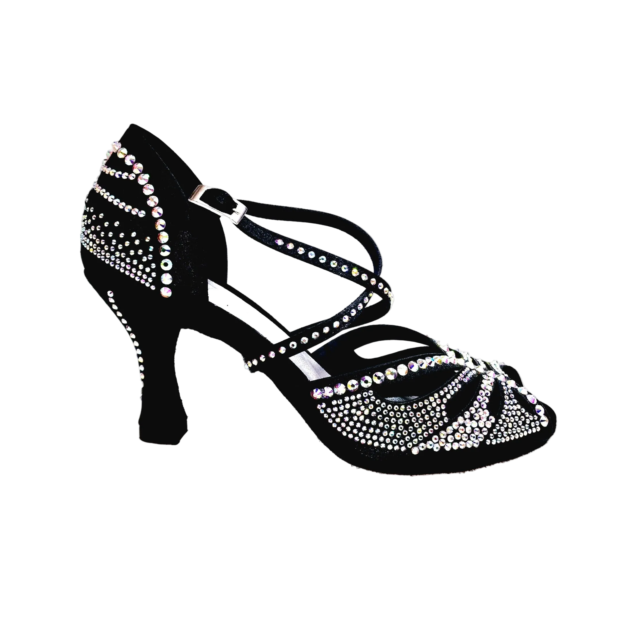 DADA Diamond PLUS QC (L55) - Scarpa da Ballo da Donna in Raso Seta Nero cinturino incrociato sul collopiede con Swarovski boreali anche sul cinturino tacco a Rocchetto