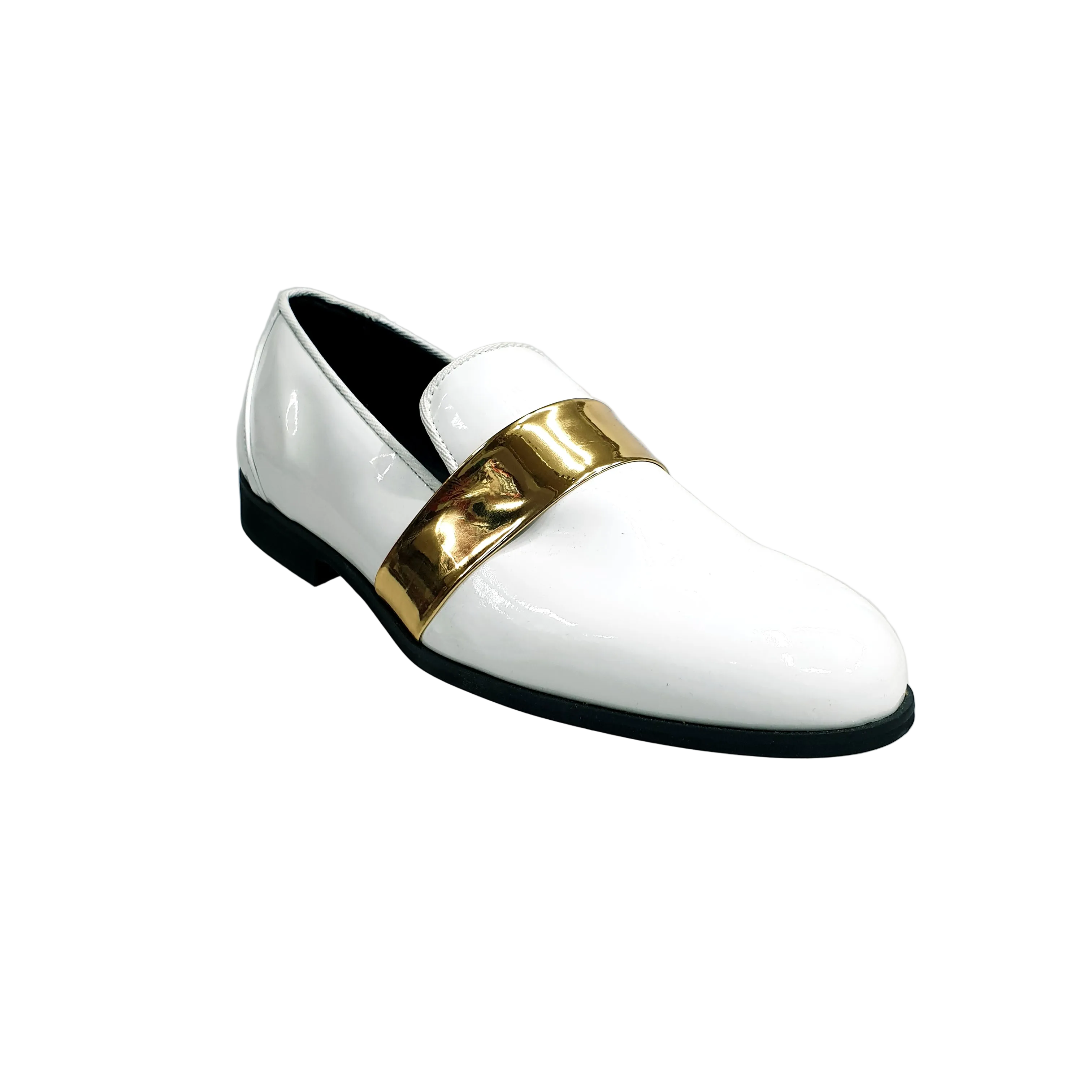 Wish Dance Shop Jackson Mocassino Vernice Bianca e Fascia Oro