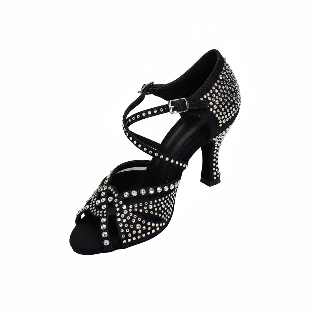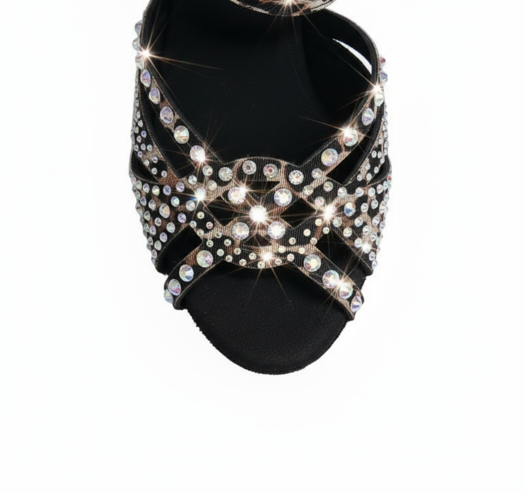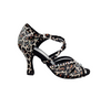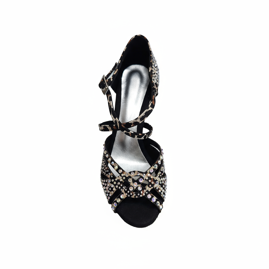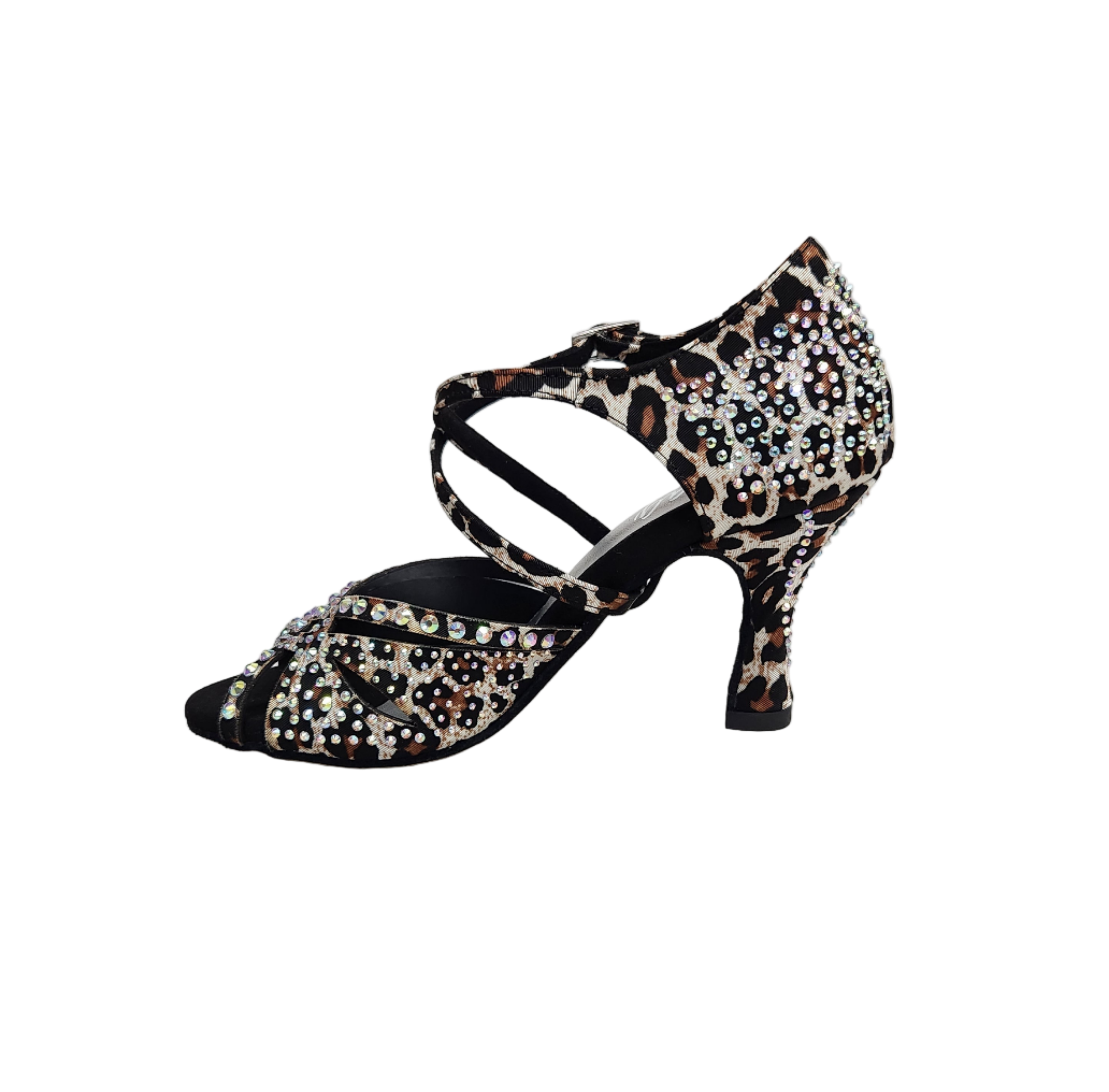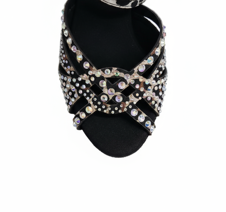 SAMIRA (L19) - Scarpa da Ballo in Raso Seta Laserata Disegno Leopardo Bianco Con Swarovski Boreali e Tacco a Rocchetto