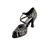 Carica immagine nella Galleria, SAMIRA (L19) - Scarpa da Ballo in Raso Seta Laserata Disegno Leopardo Bianco Con Swarovski Boreali e Tacco a Rocchetto
