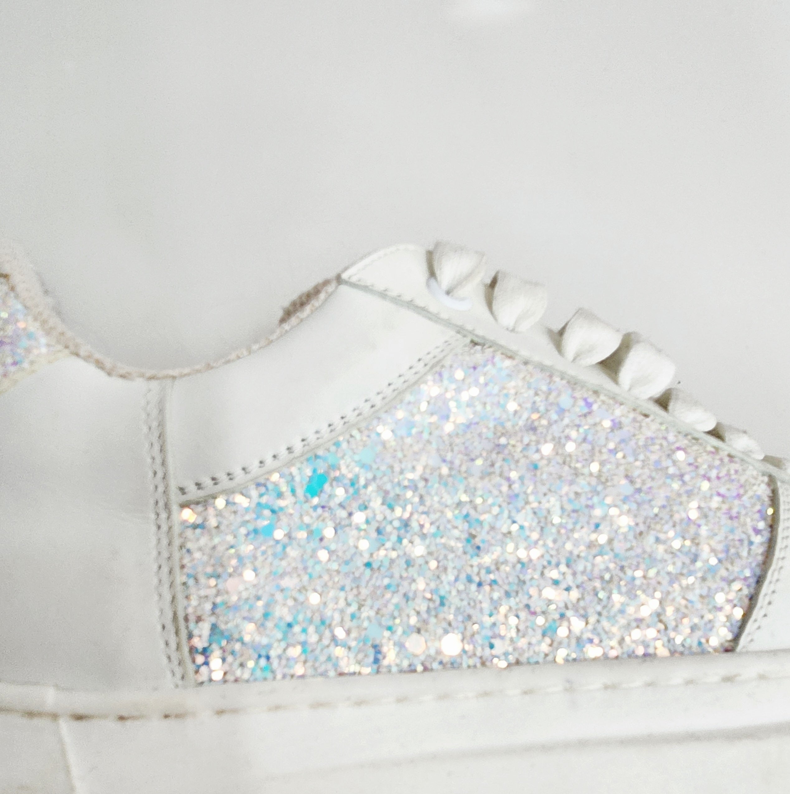 MIKI Cielo Perla (SK2) - Sneaker in Pelle Bianca Fori Traspiranti inserti Kristall Celeste Perla Boreale Foderata in tessuto antisudore traspirante sottopiede confort plus con Suola in Lattice Bianca