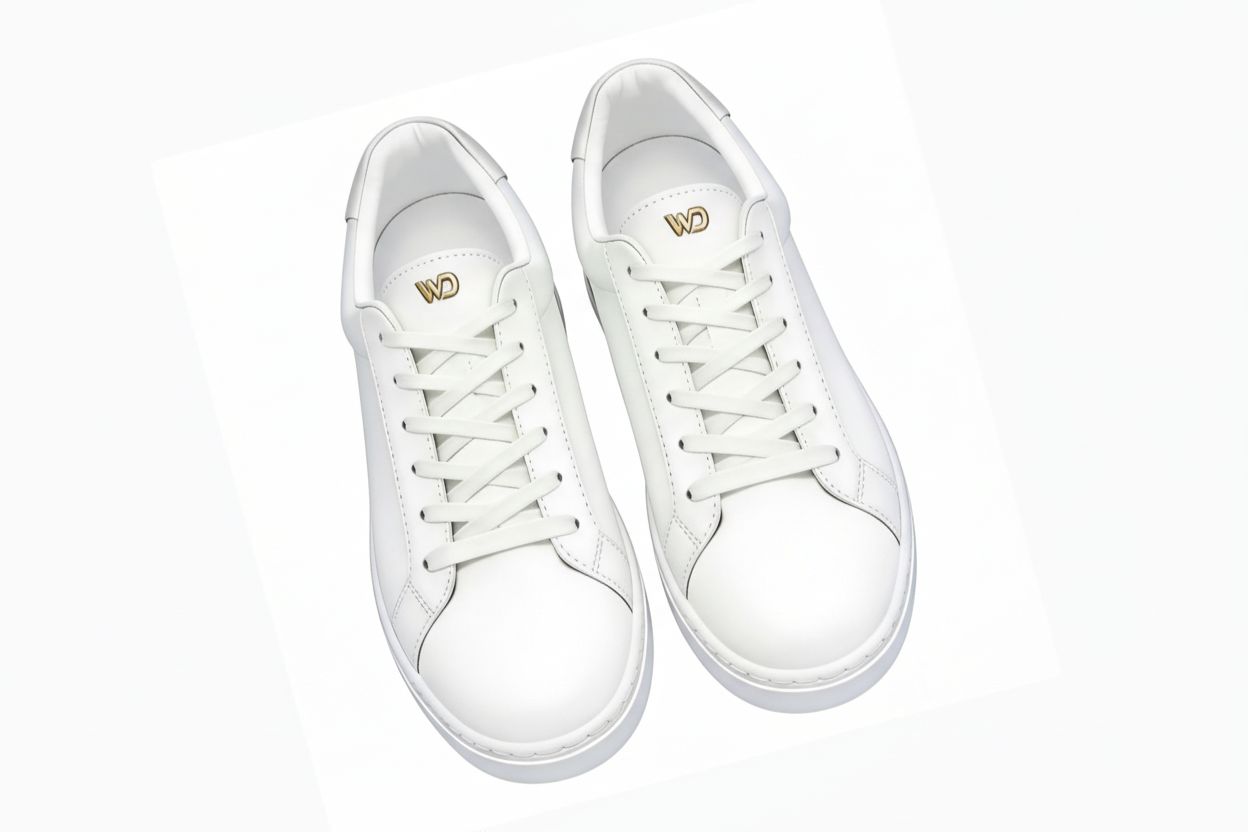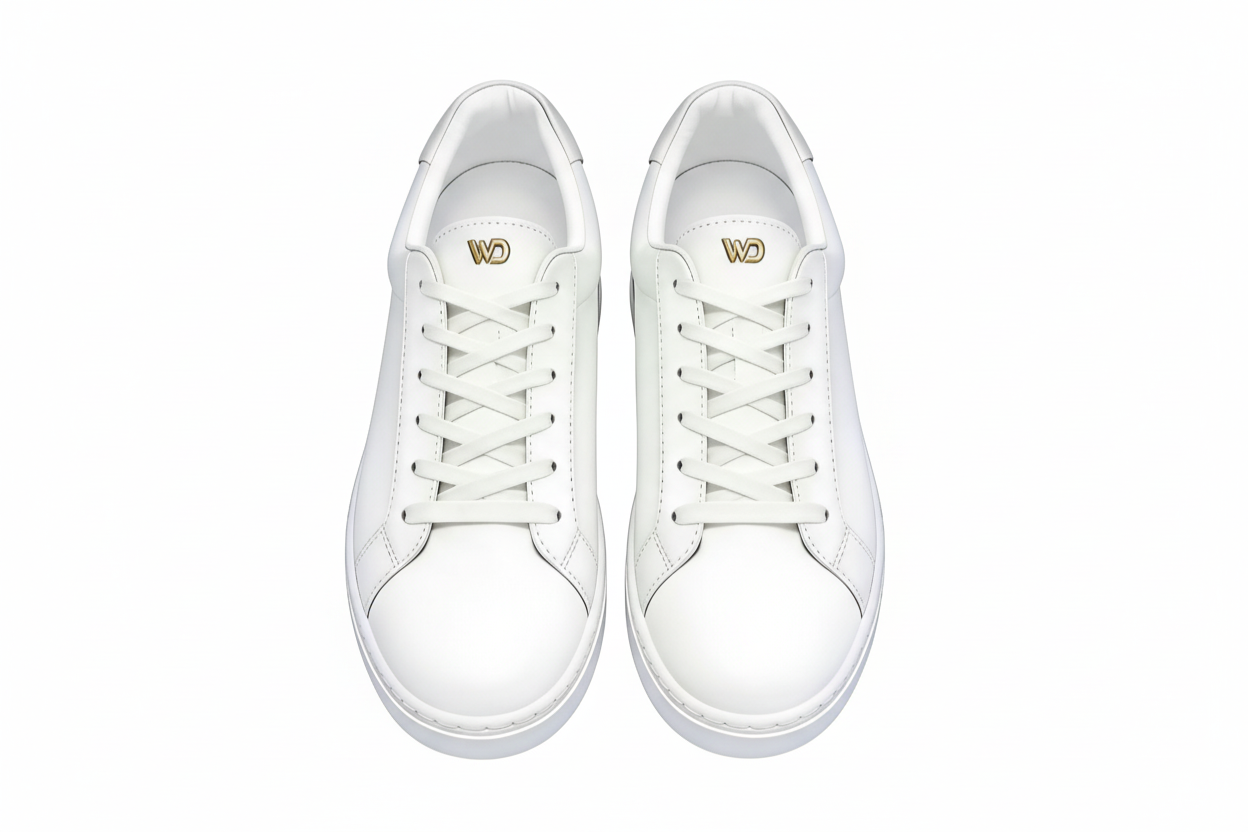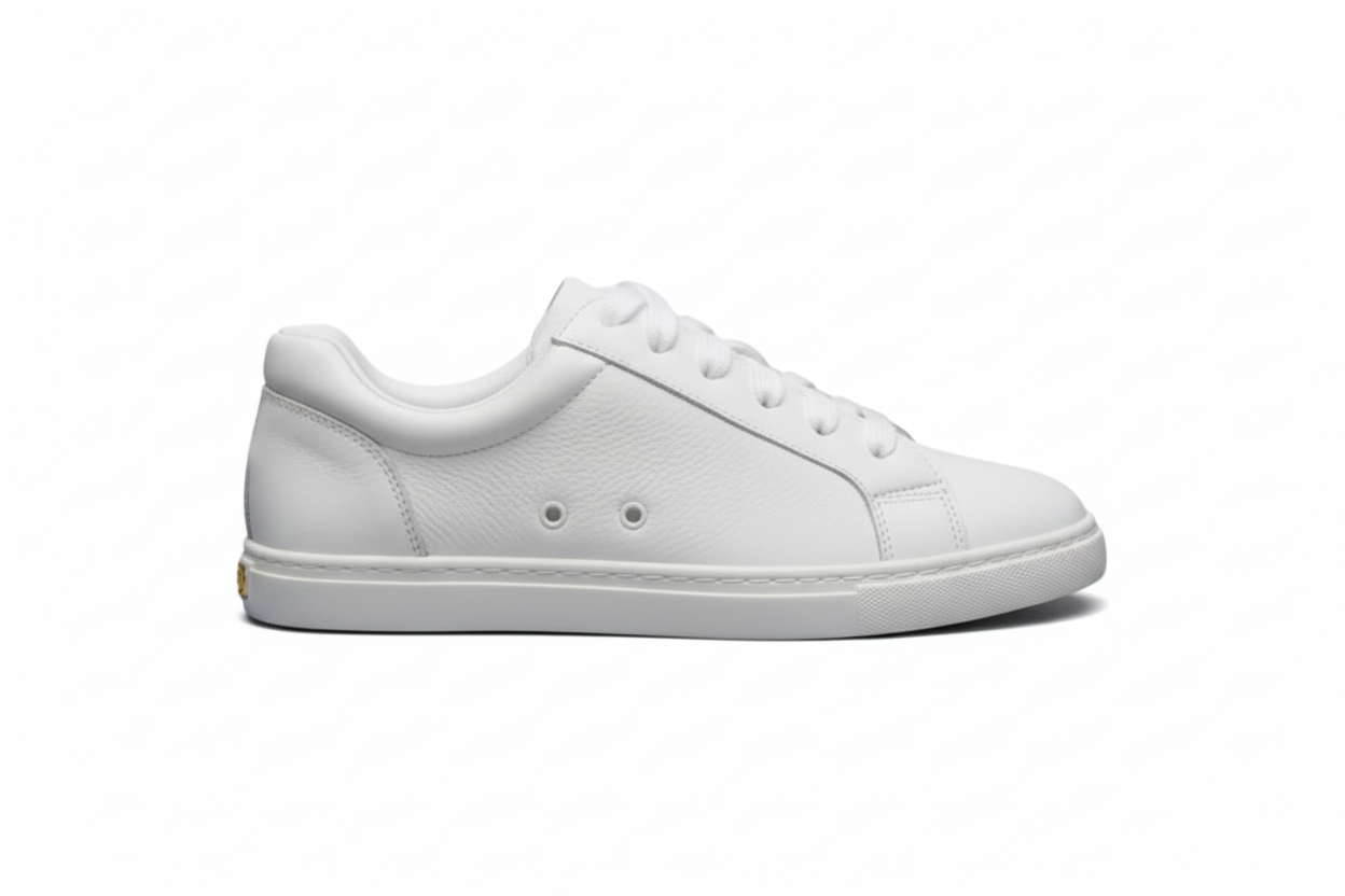 Ataca Vortice (FCE) - Sneaker Ecopelle Totale Bianca materiale Vegan confort Light Flex Suola Bianca in Gommina e Resina Tecnica Cerchi Oro